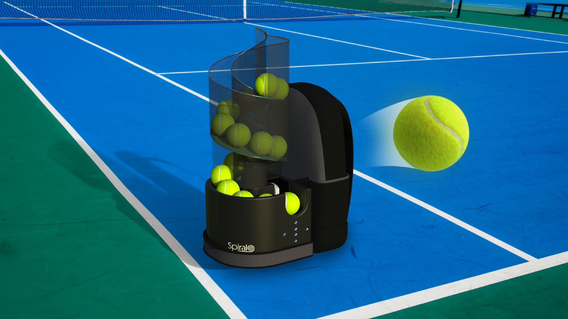 Innovation The Spiral Tennis Machine uses new ways to compact and store tennis balls over any other beginner-level tennis machines on the market, the product can be transported easily and improves affordability by using fabric and metal wire over multiple heavy plastic molds typical of similar tennis serving machines.
