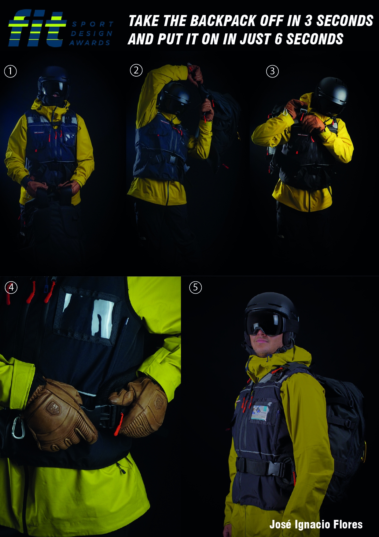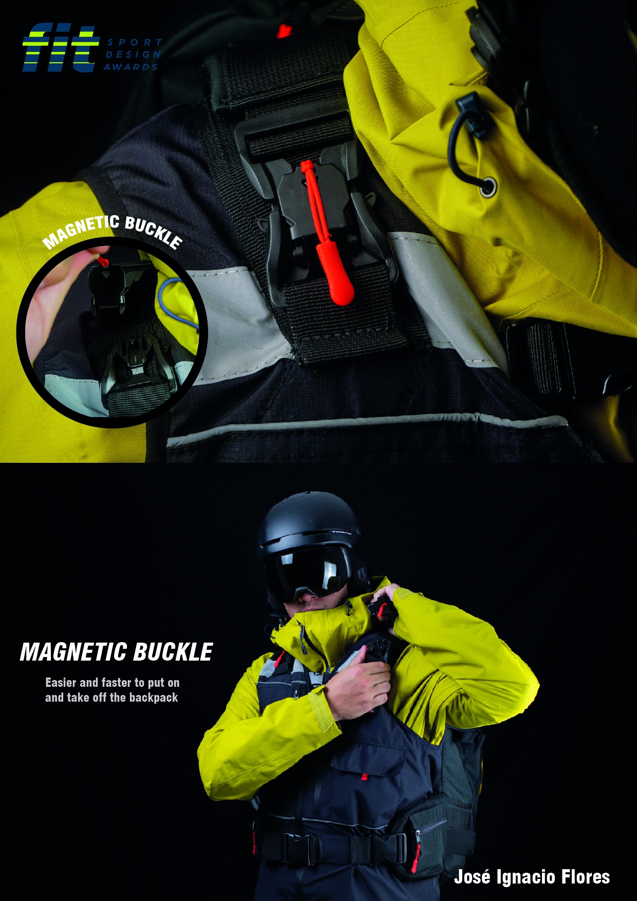 Innovation The innovation of this product is focused on being able to have a vest with a backpack that can be joined and separated in a matter of seconds thanks to the magnetic buckles.