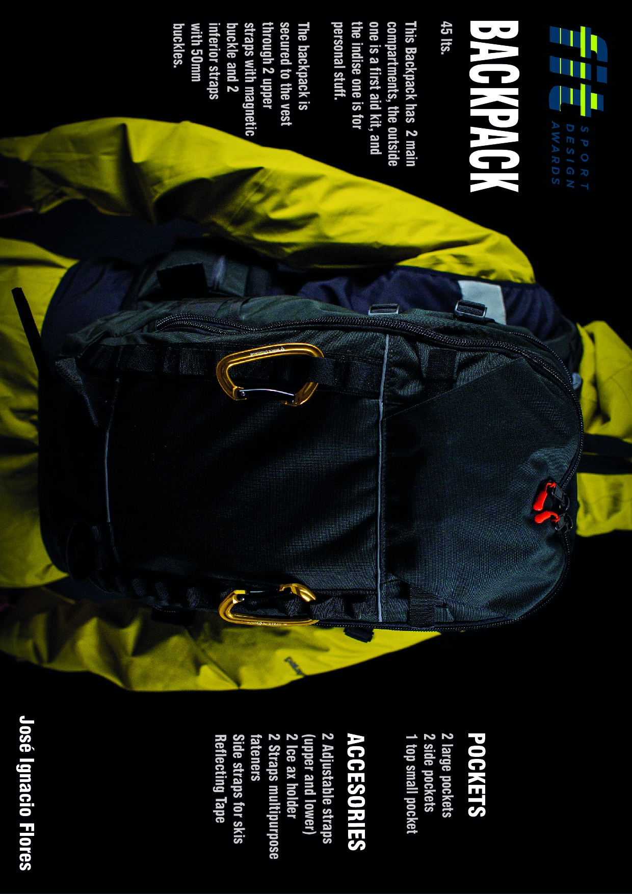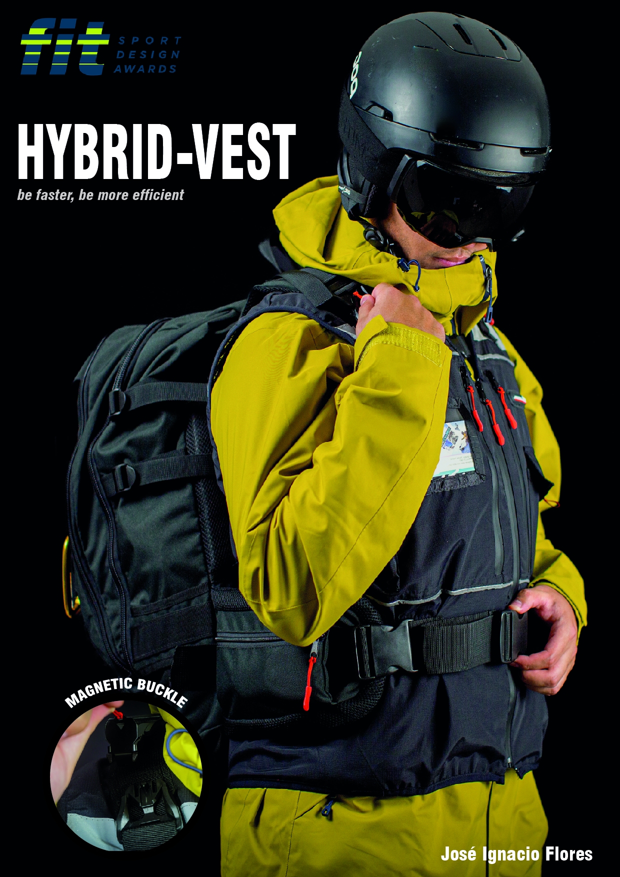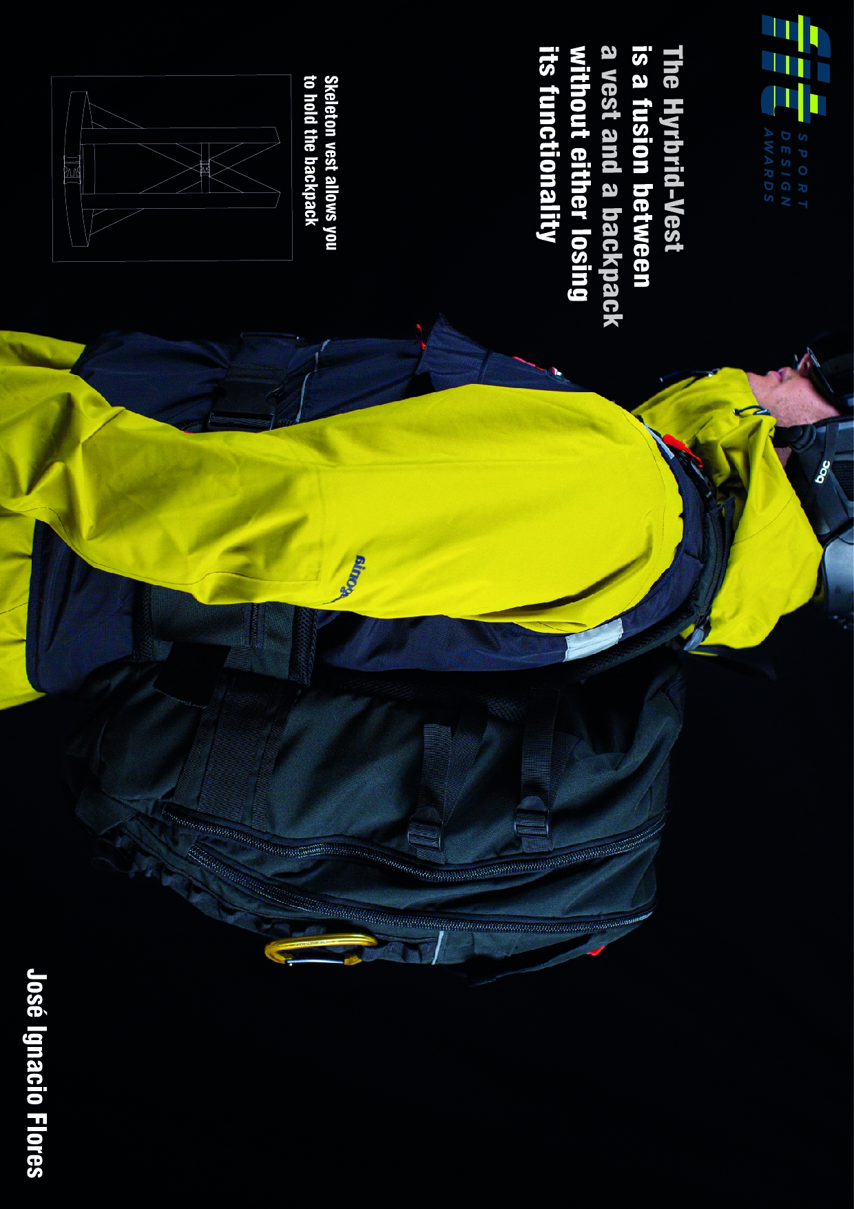 Description The Hybrid-Vest is a fusion between a vest and a 45 lt backpack, without either losing its functionality. So you can use a backpack with a vest on without it losing its functionality, since when used separately, the backpack straps block the main pockets of the vest. This concept is created for ski patrols, however it can be scaled to different types of skiers, sports or occupations.