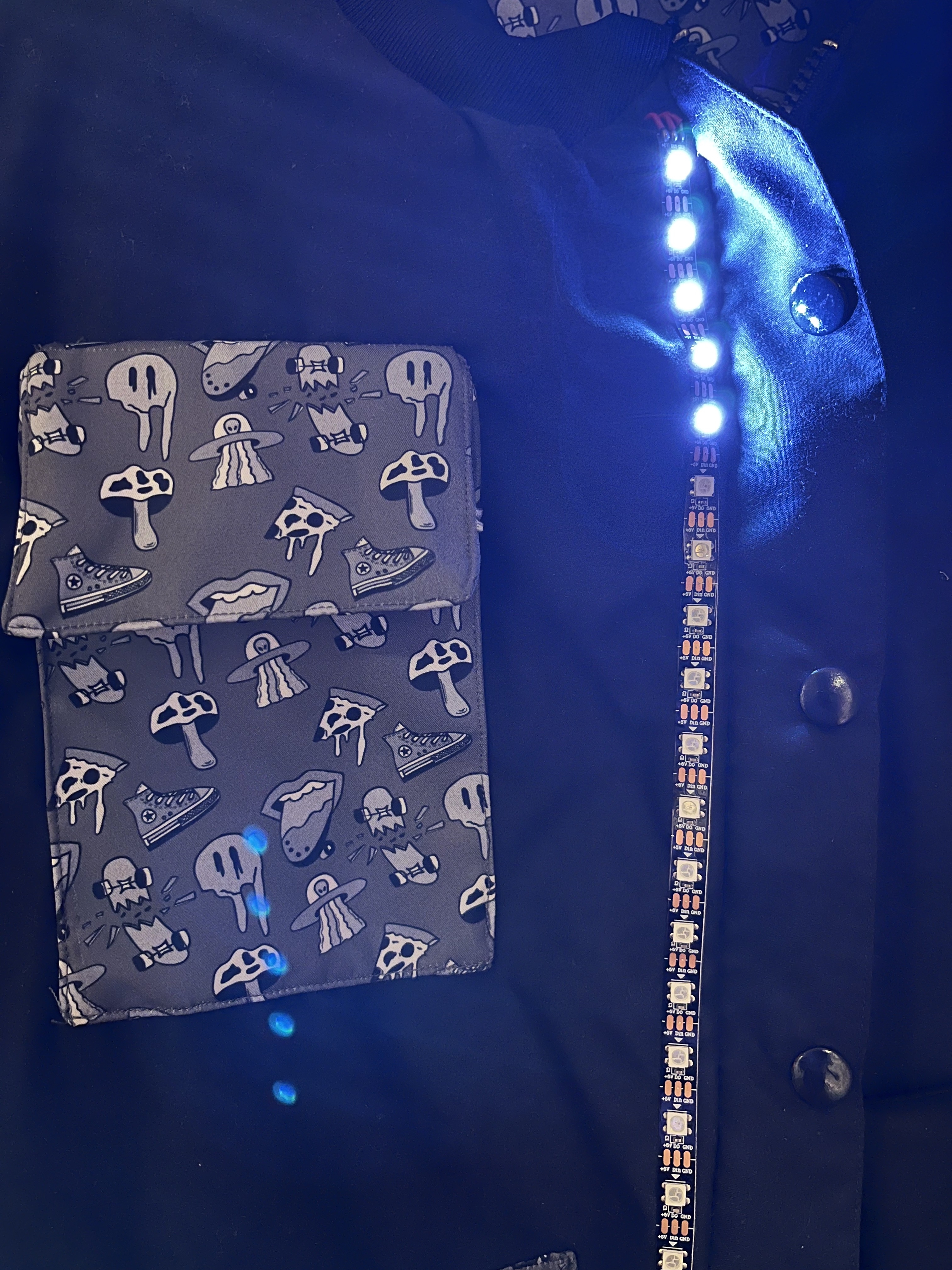 Para todas las personas que usan patineta de noche, es muy importante la seguridad. Si pasan por desapercibidos podrían ocasionar un accidente grave en las calles. Es por eso que la chamarra y la mochila tienen leds los cuales ayudan a que el usuario se pueda ver a distancia de la parte de adelante y de atrás.