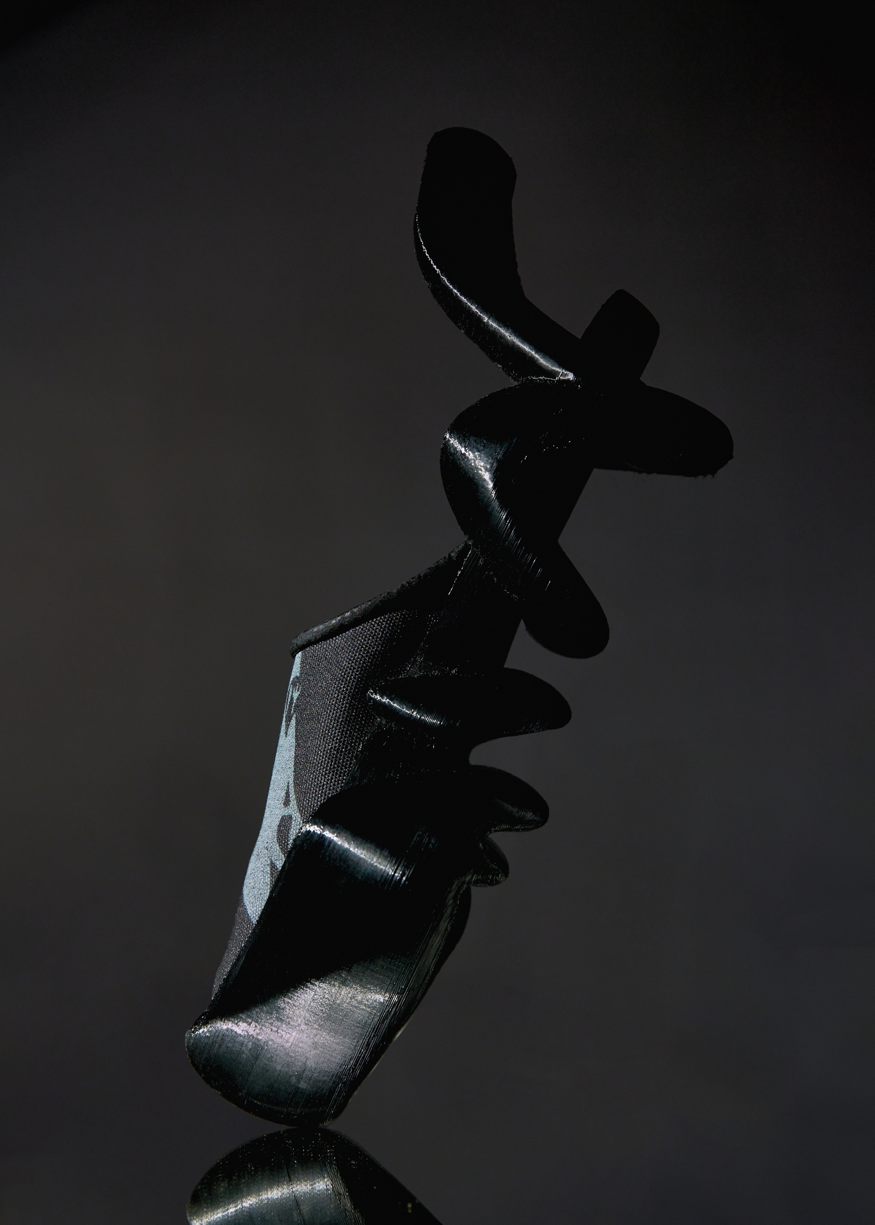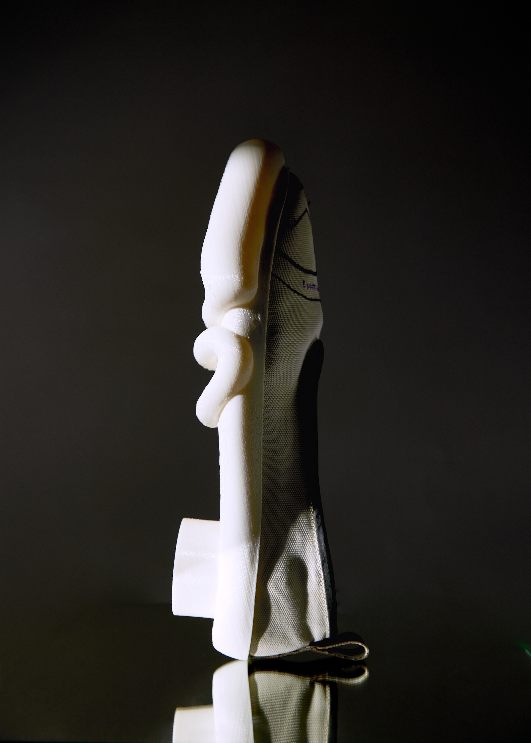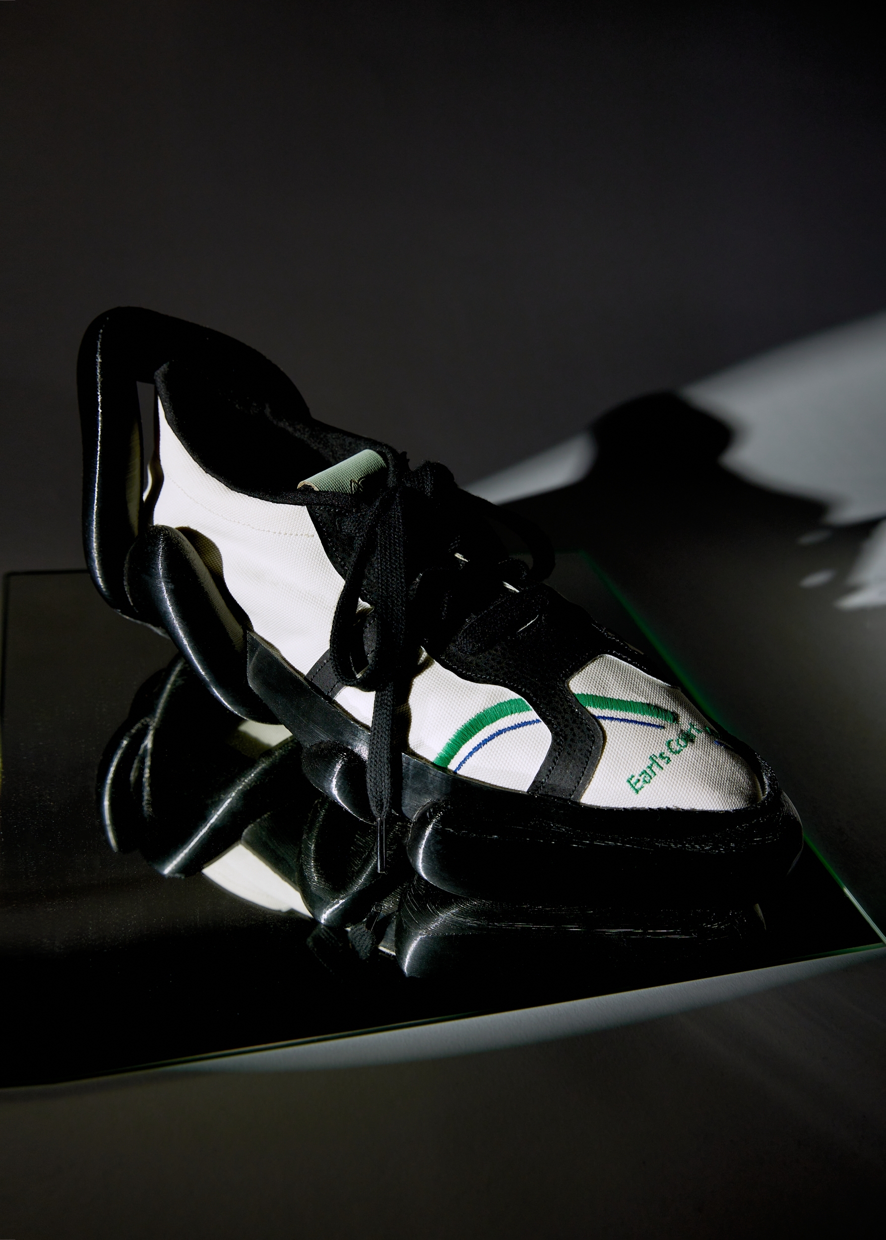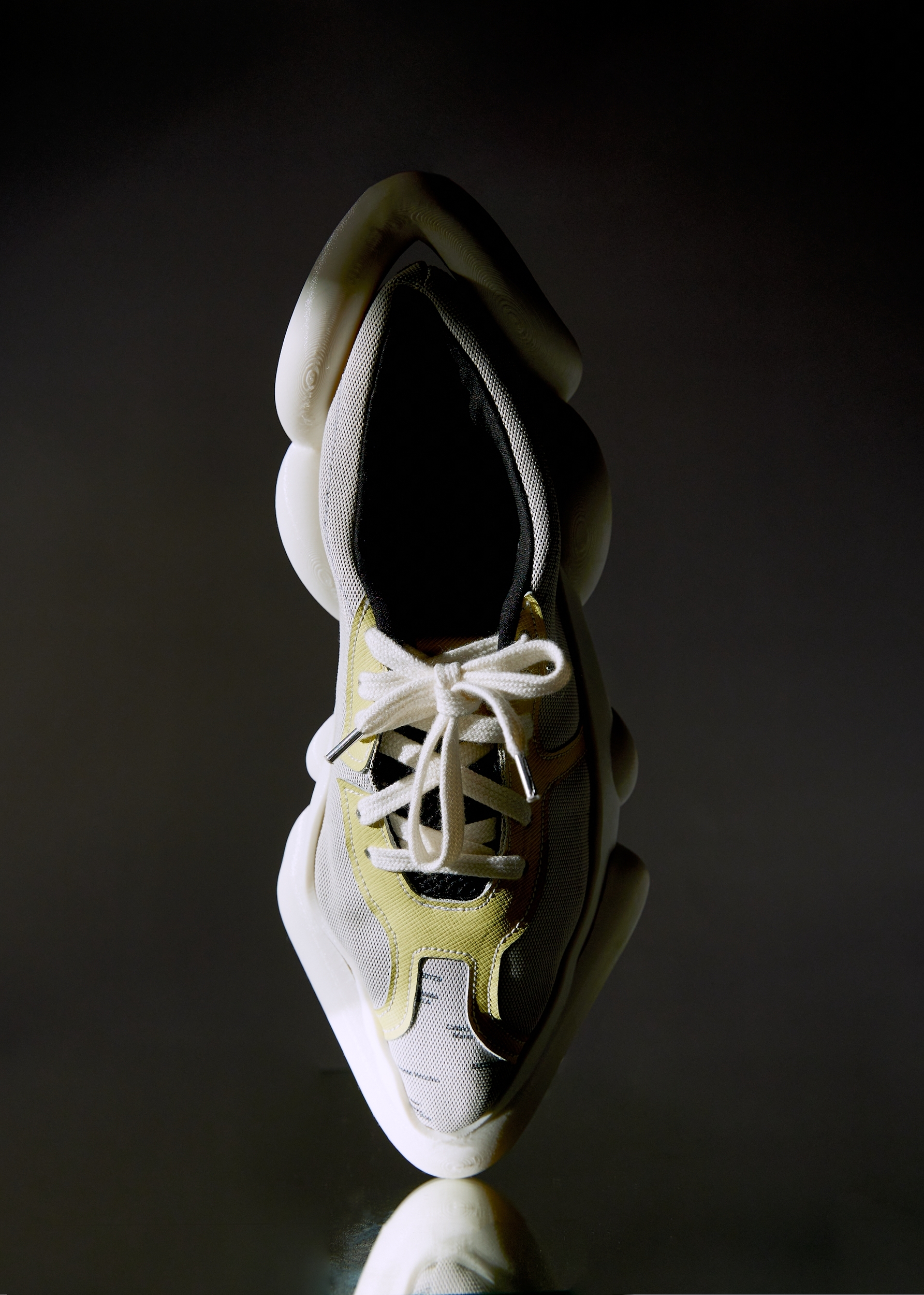 I tried to cover all components of Footwear from last, upper to sole, combining handcrafts and advanced technologies. All shoes are hand-assembled onto the 3D printed Hallux-valgus inspired lasts, with Bananatex fabric/recycled leather uppers, and TPU-printed outsoles, designed in Gravity Sketch, which had been developed from my name initials in Korean alphabets.