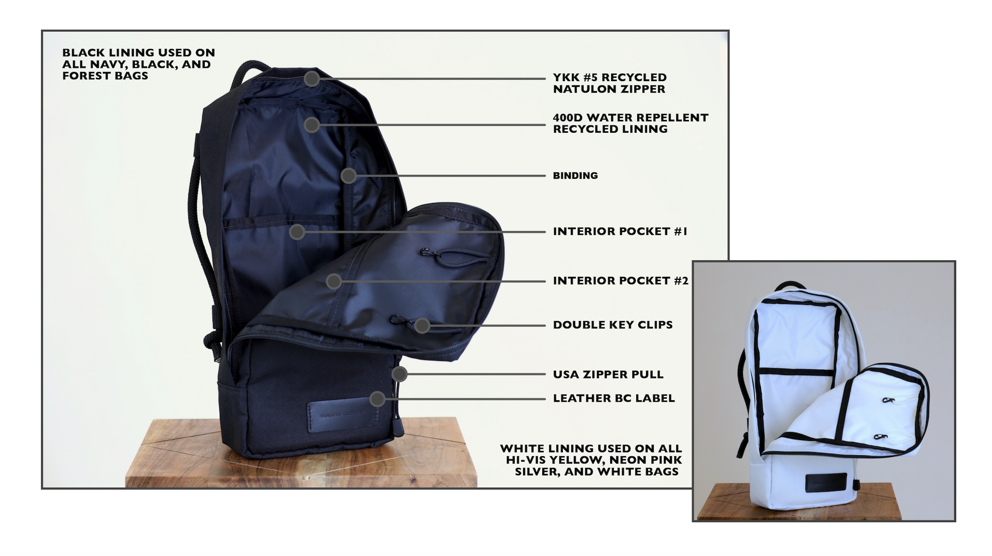 I use YKK mechanically recycled NATULON zippers, which are made of 99% post-consumer recycled materials, and just one plastic bottle can make three zippers!