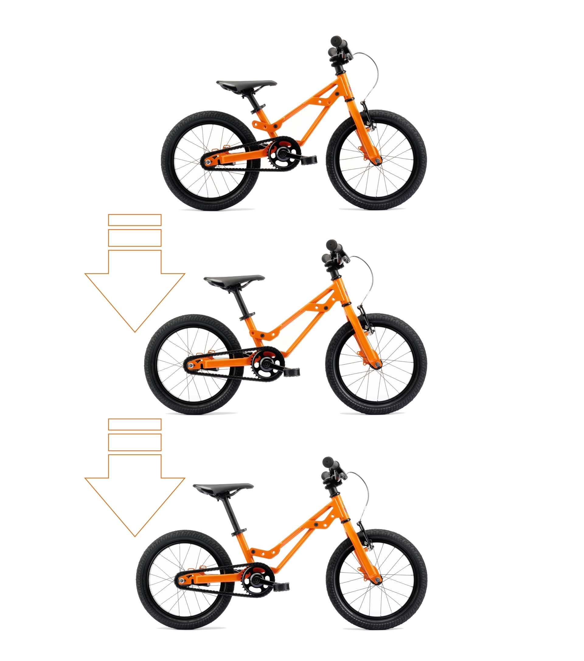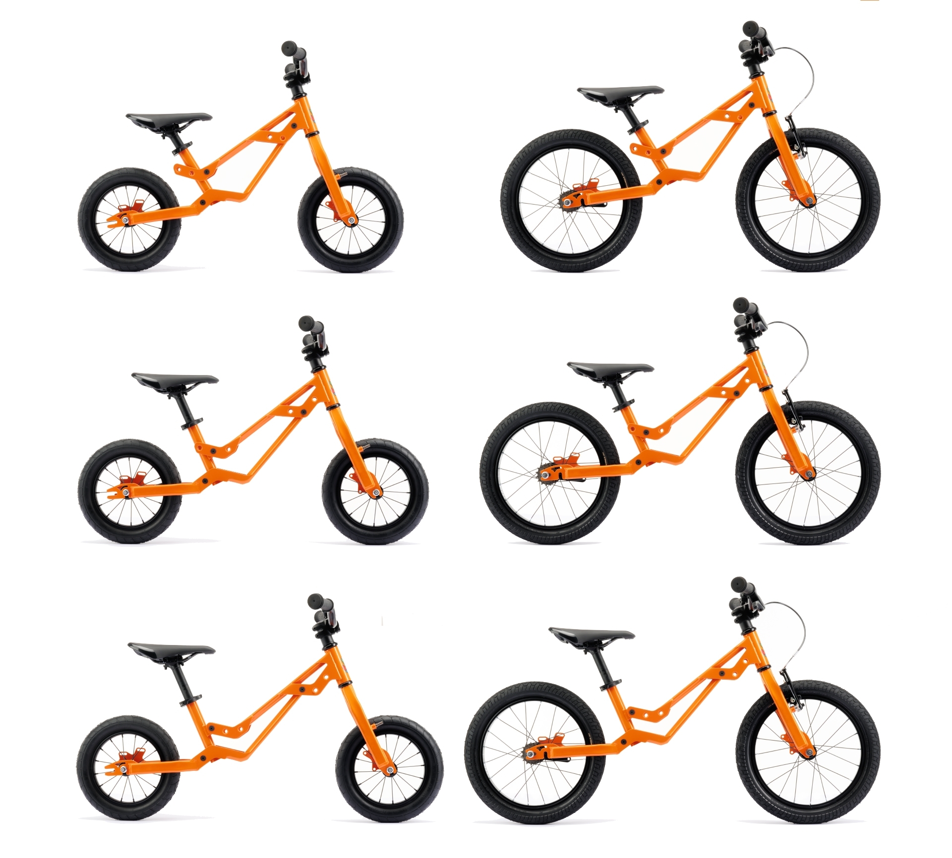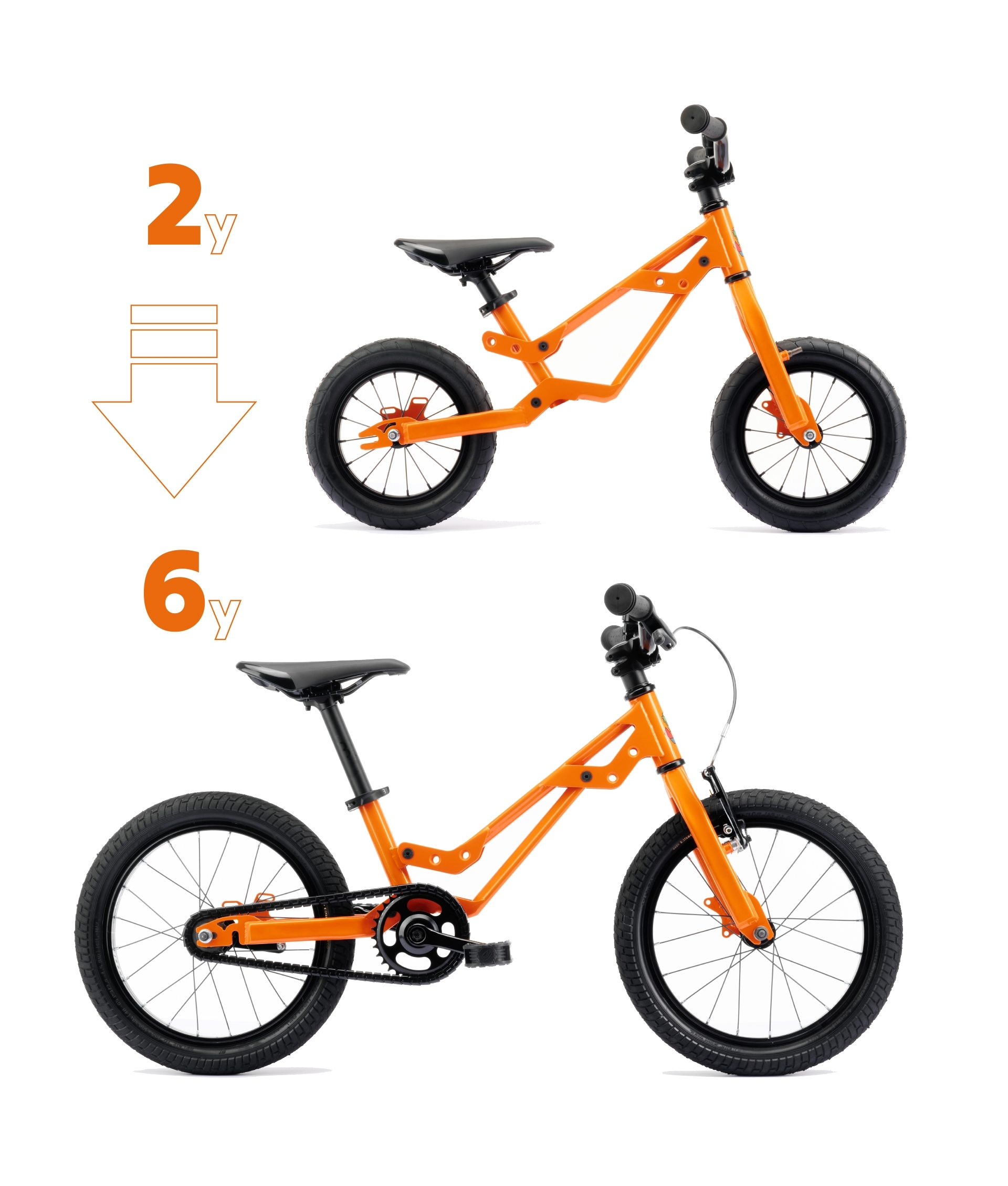 Description The children’s growing bicycle Former is designed for children between the age of two and six, or between the height of 89 cm and 125 cm. The product incorporates several models: from a 12-inch and 16-inch balance bike to a 16-inch bicycle. Every variant can easily be adapted according to the individual needs of the child. The innovative bike Former offers up to nine different models of a standard balance bike or bicycle.