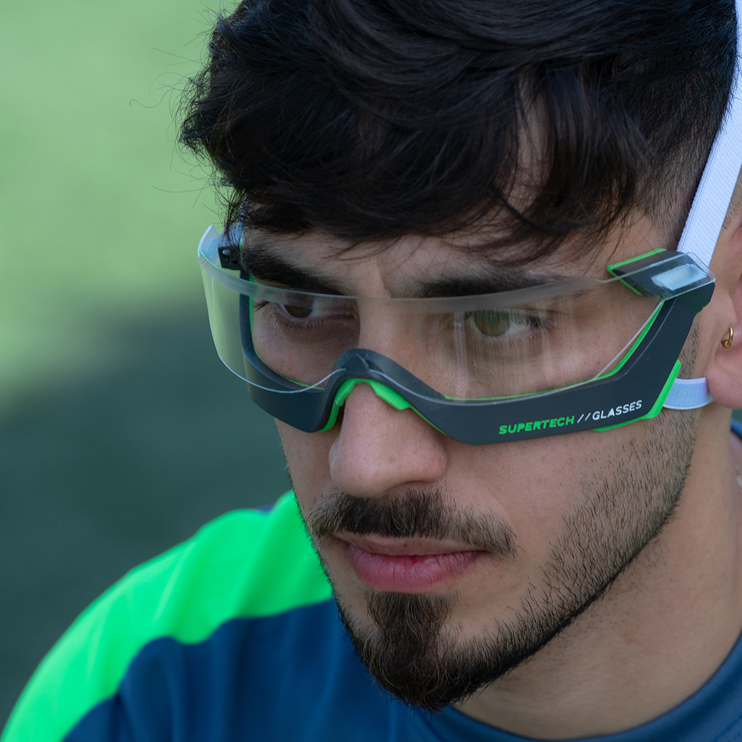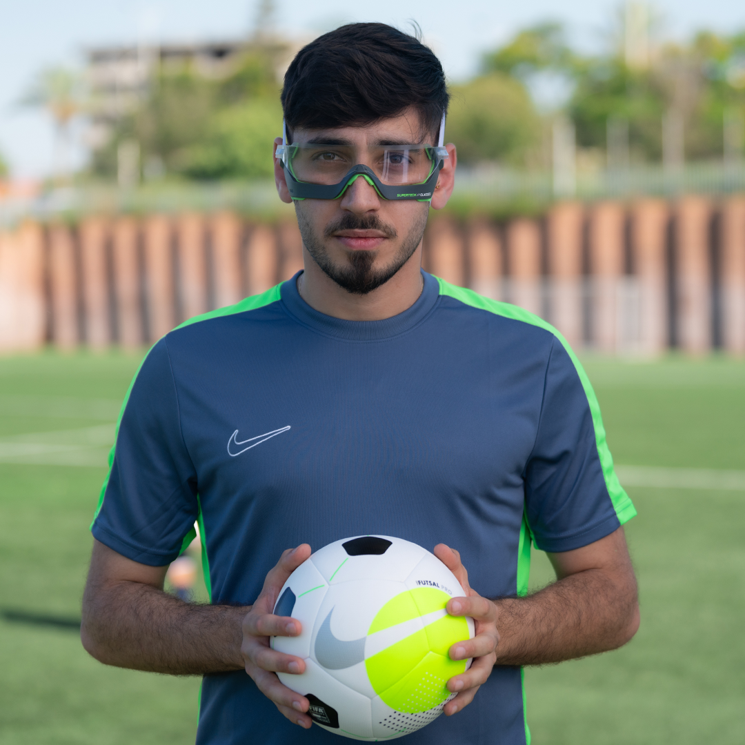 These glasses represent a dynamic fusion of sports and technology, offering football players a smart, layered view of their environment in an innovative way.