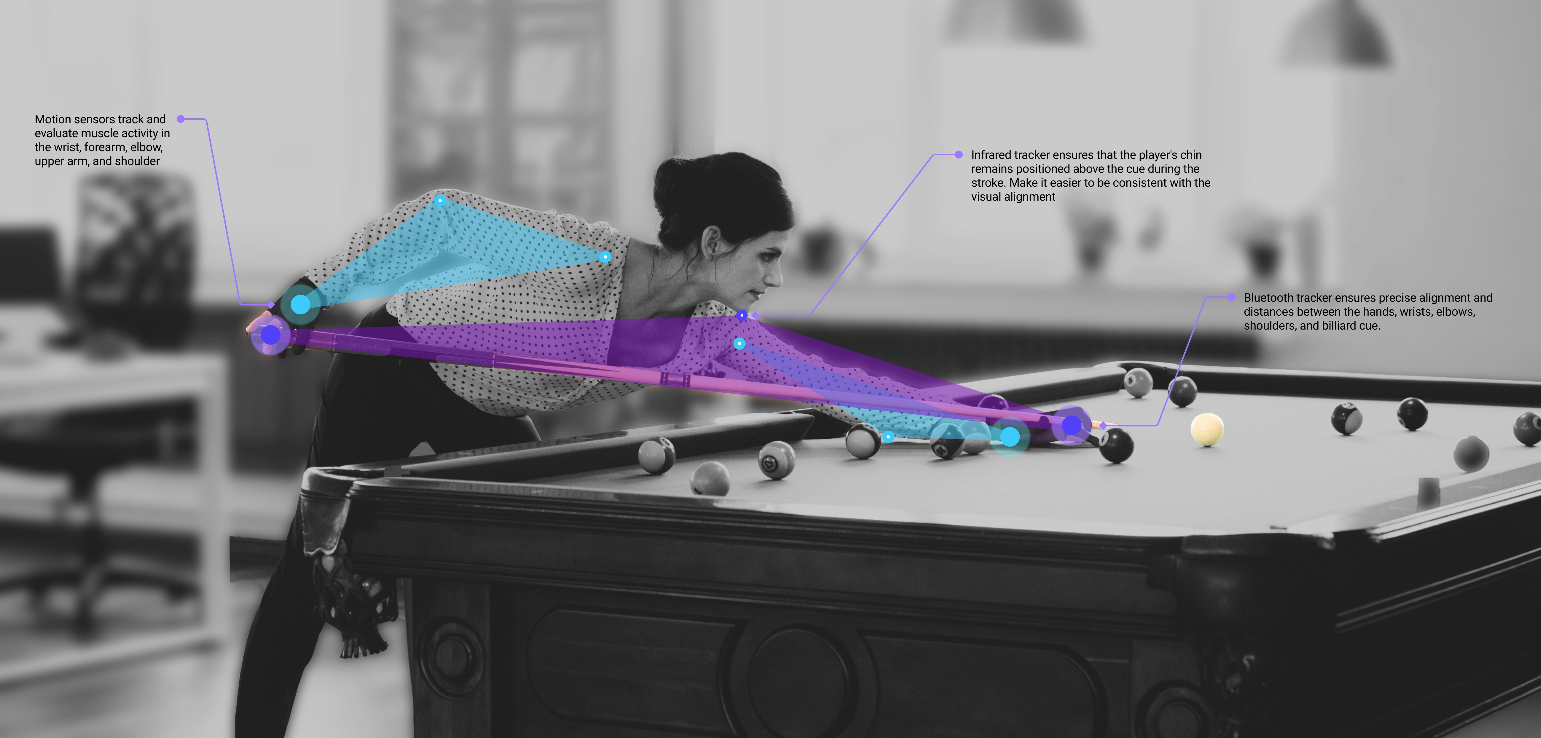 In the realm of billiards, mastering foundational skills and maintaining correct postures are critical for achieving precision and consistency in gameplay. However, traditional methods of practice often rely on external coaching, specific timing, and fixed locations, presenting challenges for players seeking independent improvement. Recognizing these hurdles, our design team embarked on creating a solution that merges technology with the essential needs of billiard players.