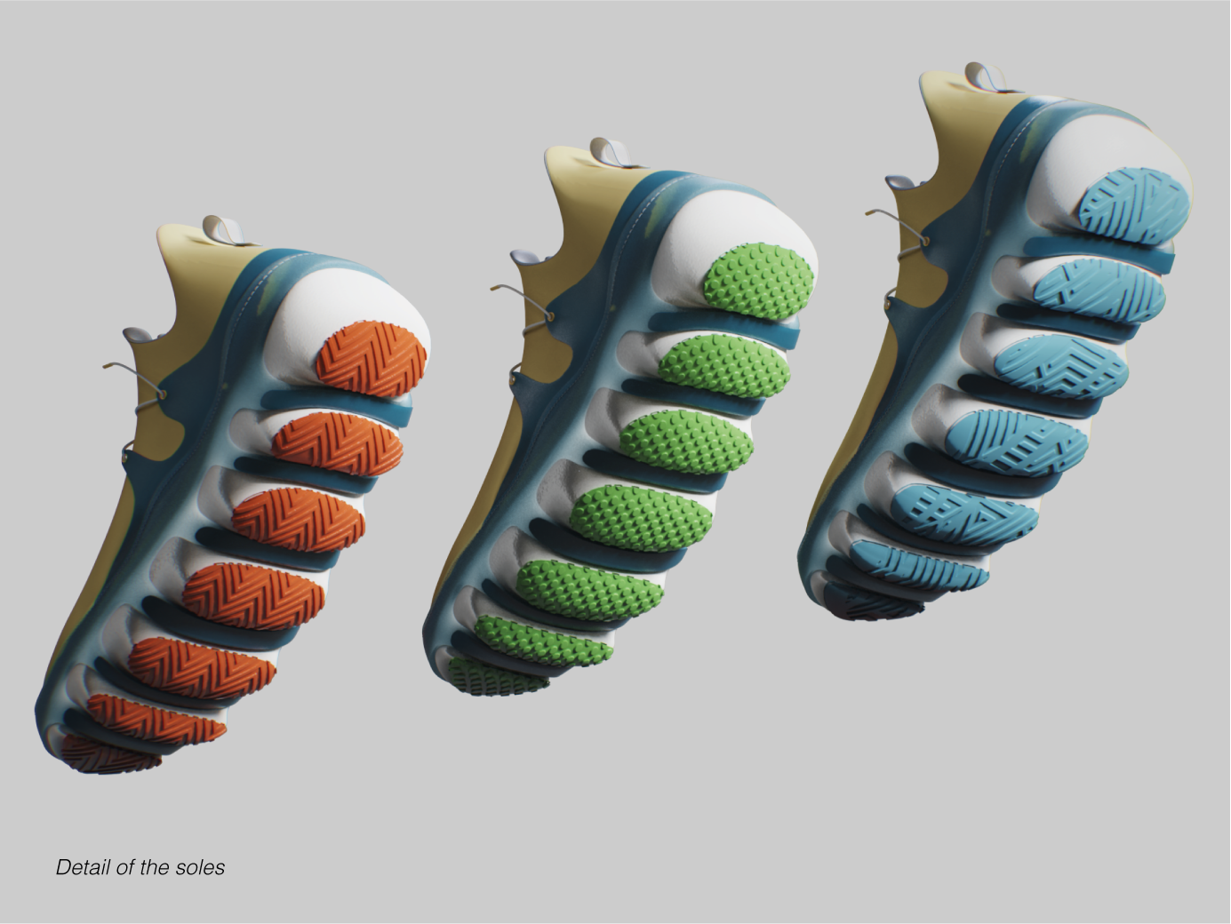 Description The project we are going to present falls under the category of sports equipment and it is a tennis shoe. What makes our concept interesting, unconventional and innovative is the possibility of replacing the sole of the shoe, either to adapt it to different playing surfaces or to replace it when damaged. The idea stems from the desire to be able to make a beginner friendly product that would allow new players to buy a single, and cheaper, solution to play on any court, instead of having to buy 3 or more pairs of shoes depending on the terrain, reducing costs and waste.