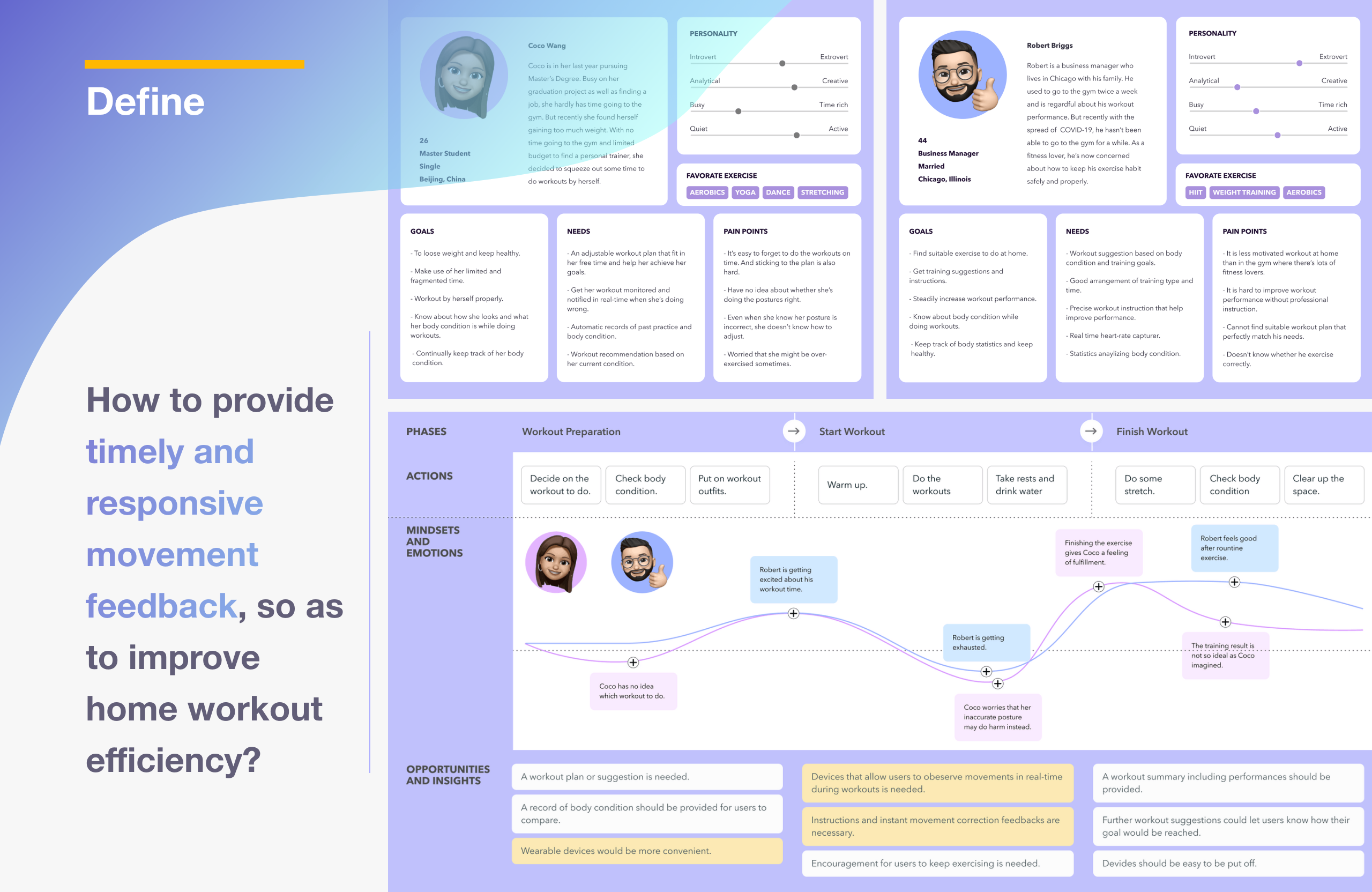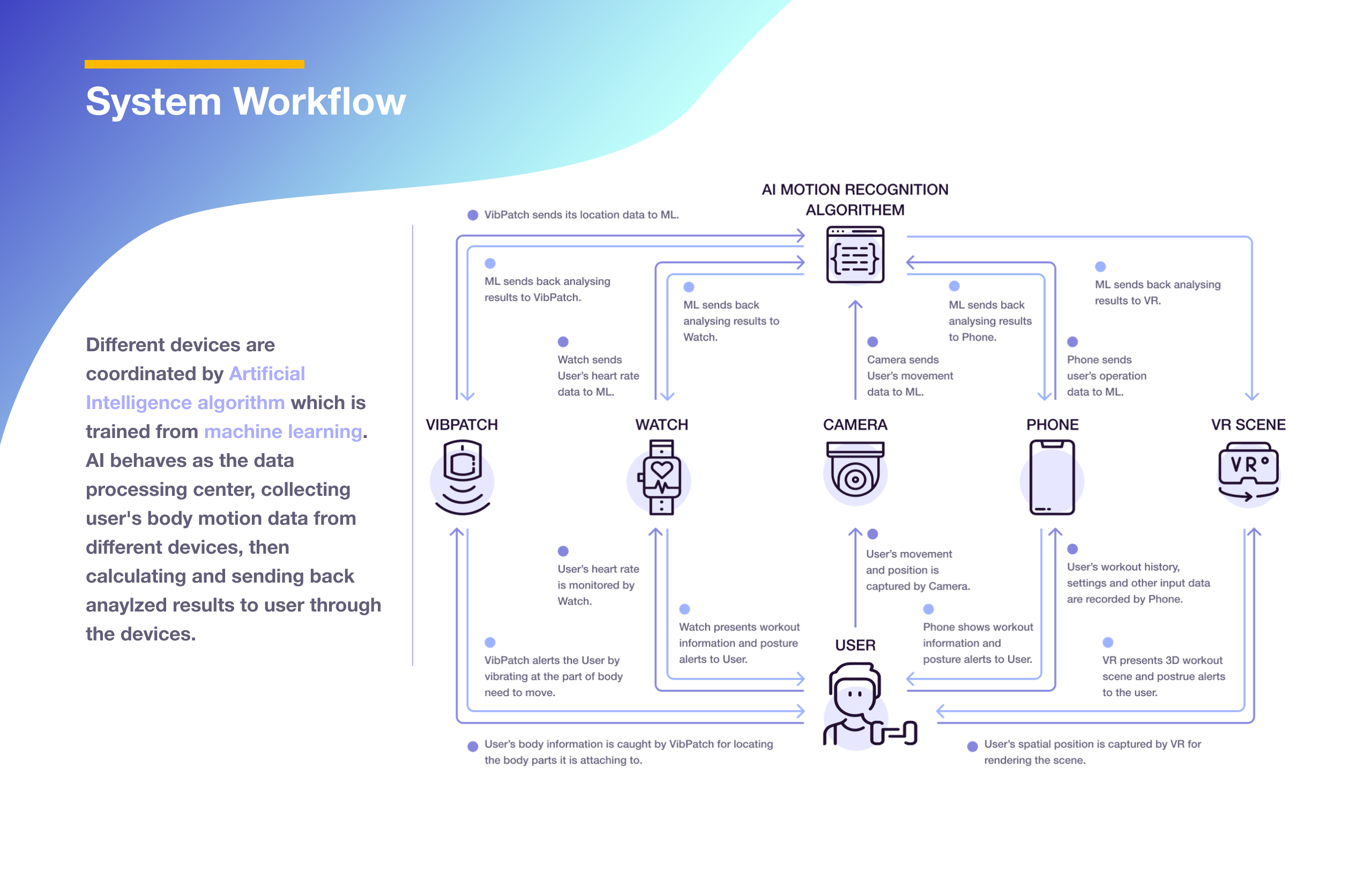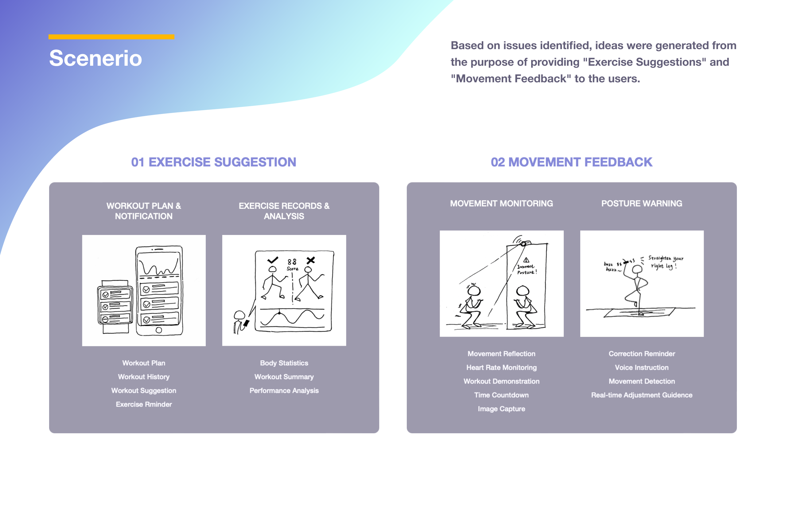 Description Technology and the epidemic are depriving people's chance of doing exercise in their familiar ways. With the increasing need in home workout, problems appeared due to the lack of workout supervision. What are the obstacles for homeworkout? How to solve unsupervised exercise issue? This project provides a systematic and technical solution to the problems.
