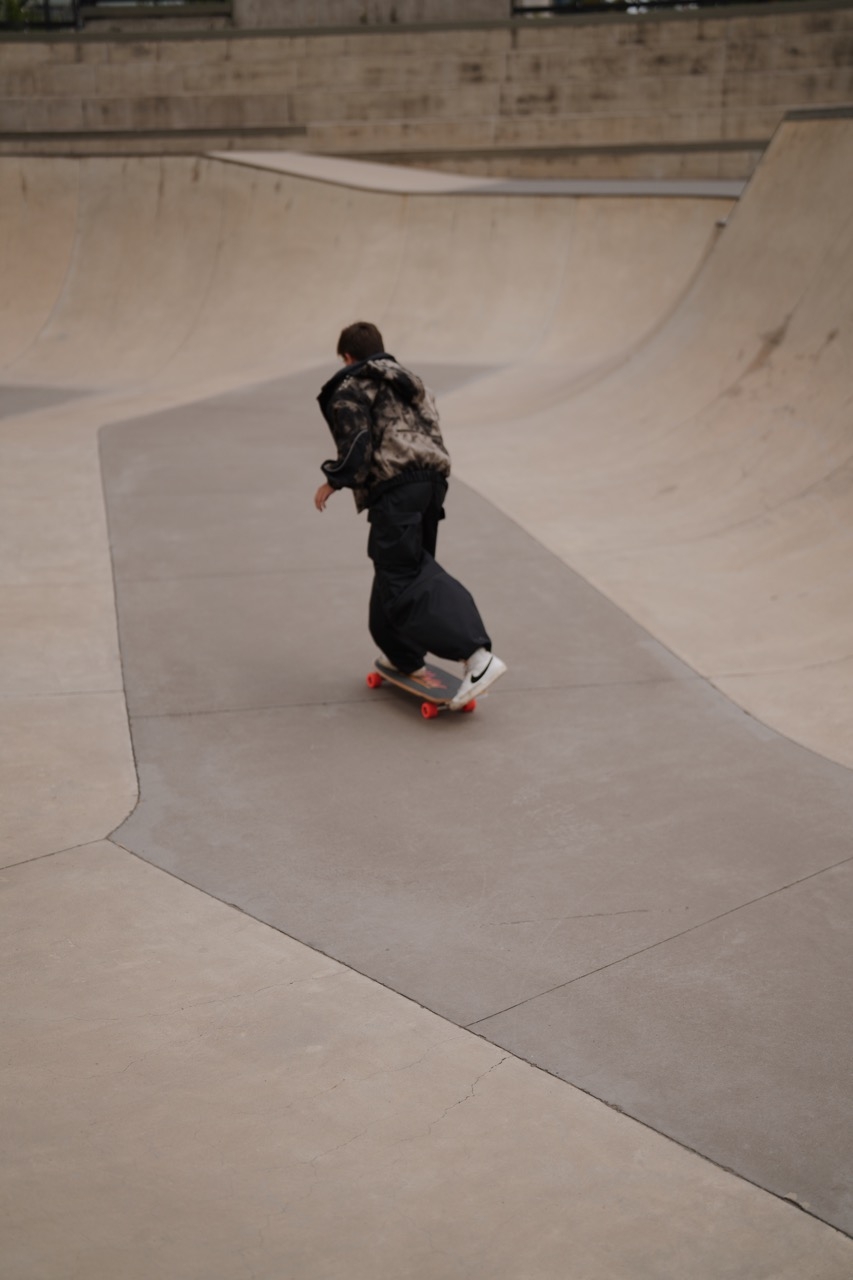 Innovation Focused on usability by incorporating 7 zippered and Velcro pockets on the jacket and pants to secure belongings during movement. Comfort was maximized through an oversized style that allows freedom of movement. Aesthetically, we opted for designs with curved lines and cuts that reflect the fluidity of skaters. In terms of materials, denim was selected for its resistance and waterproof fabric for protection against the weather, adding reflective tape for night visibility, as well as 32 Neopixels were incorporated in the shoulders, as it is a strategic point combining functionality with protection and style.