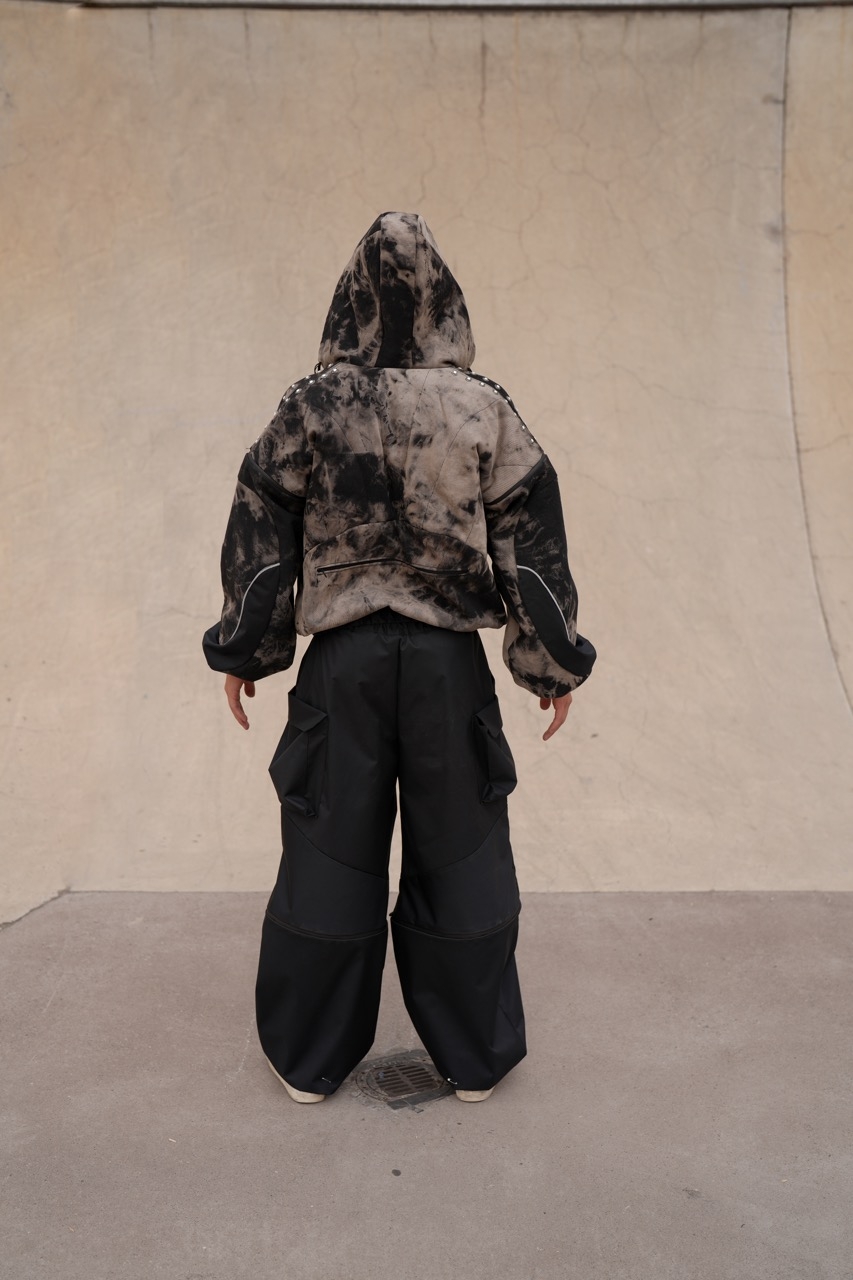 Product Detail Jacket: Bomber with detachable sleeves, cap and waistband with elastic.