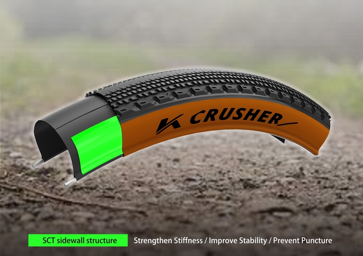 Product Detail CRUSHER aims to create a gravel tire with market-leading traction and handling. It uses a double-layer rubber design to improve rolling resistance and optimize grip and durability. It is suitable for racing and long-distance touring, making it ideal for gravel riding enthusiasts on demanding terrain.