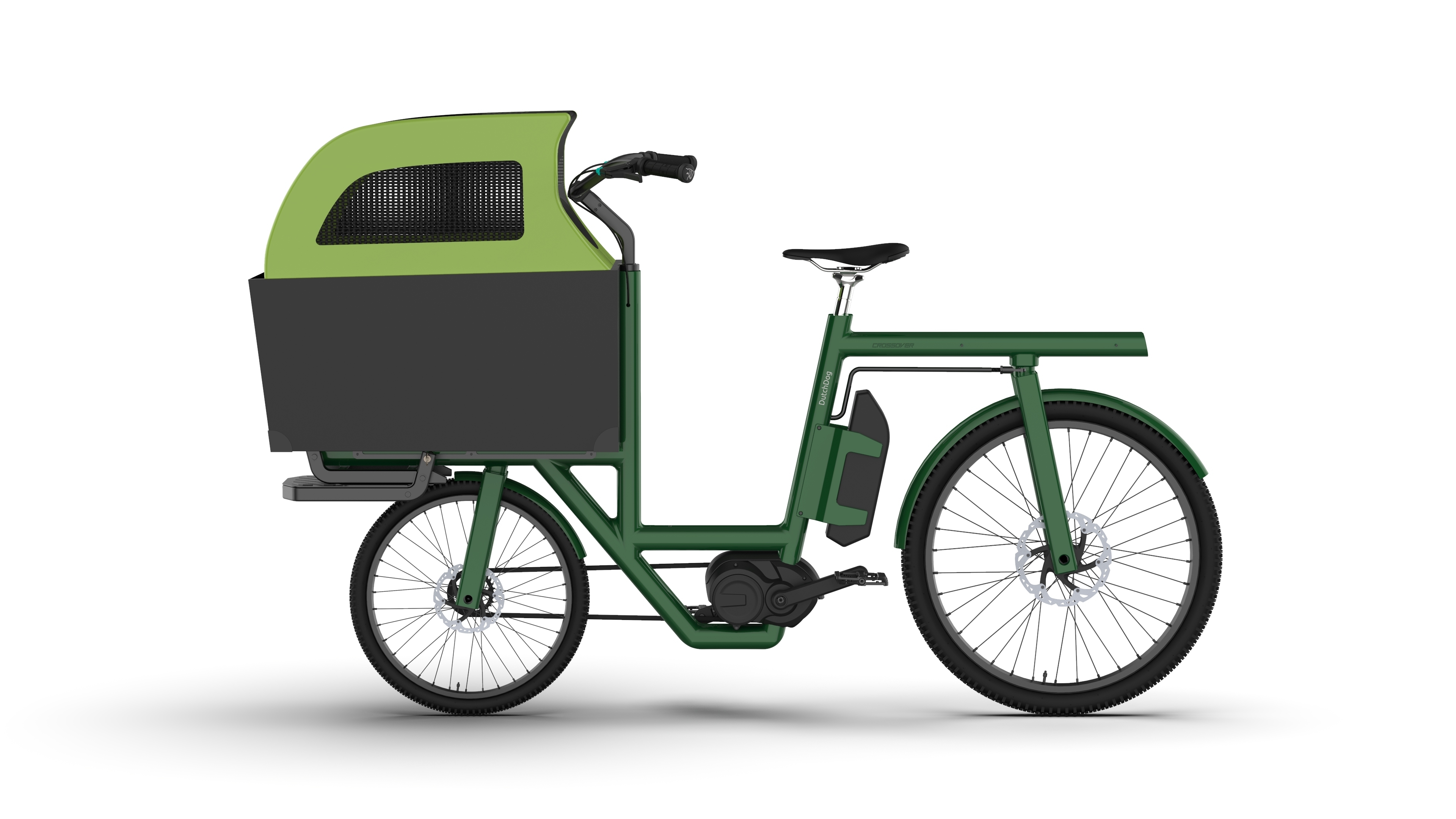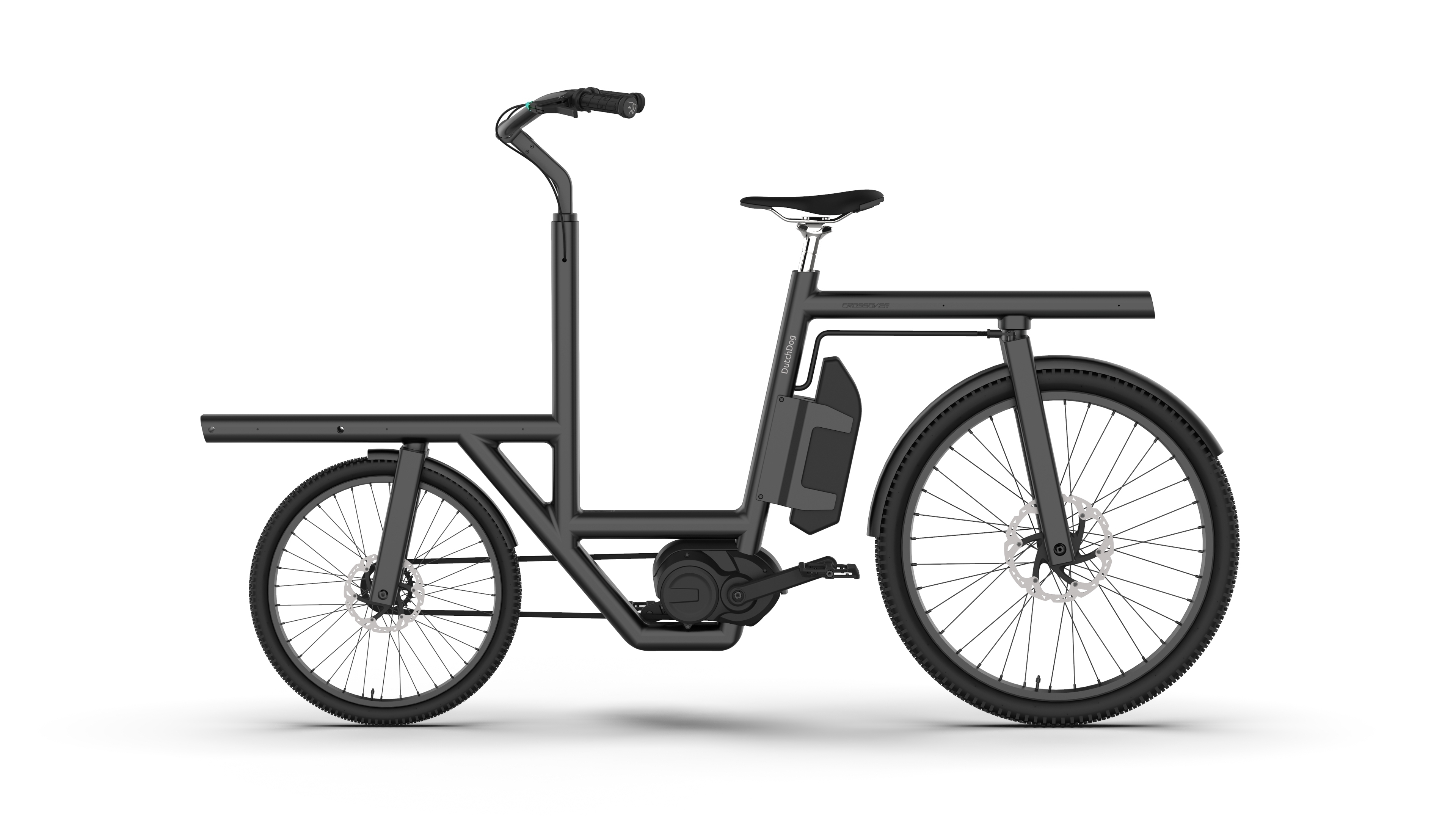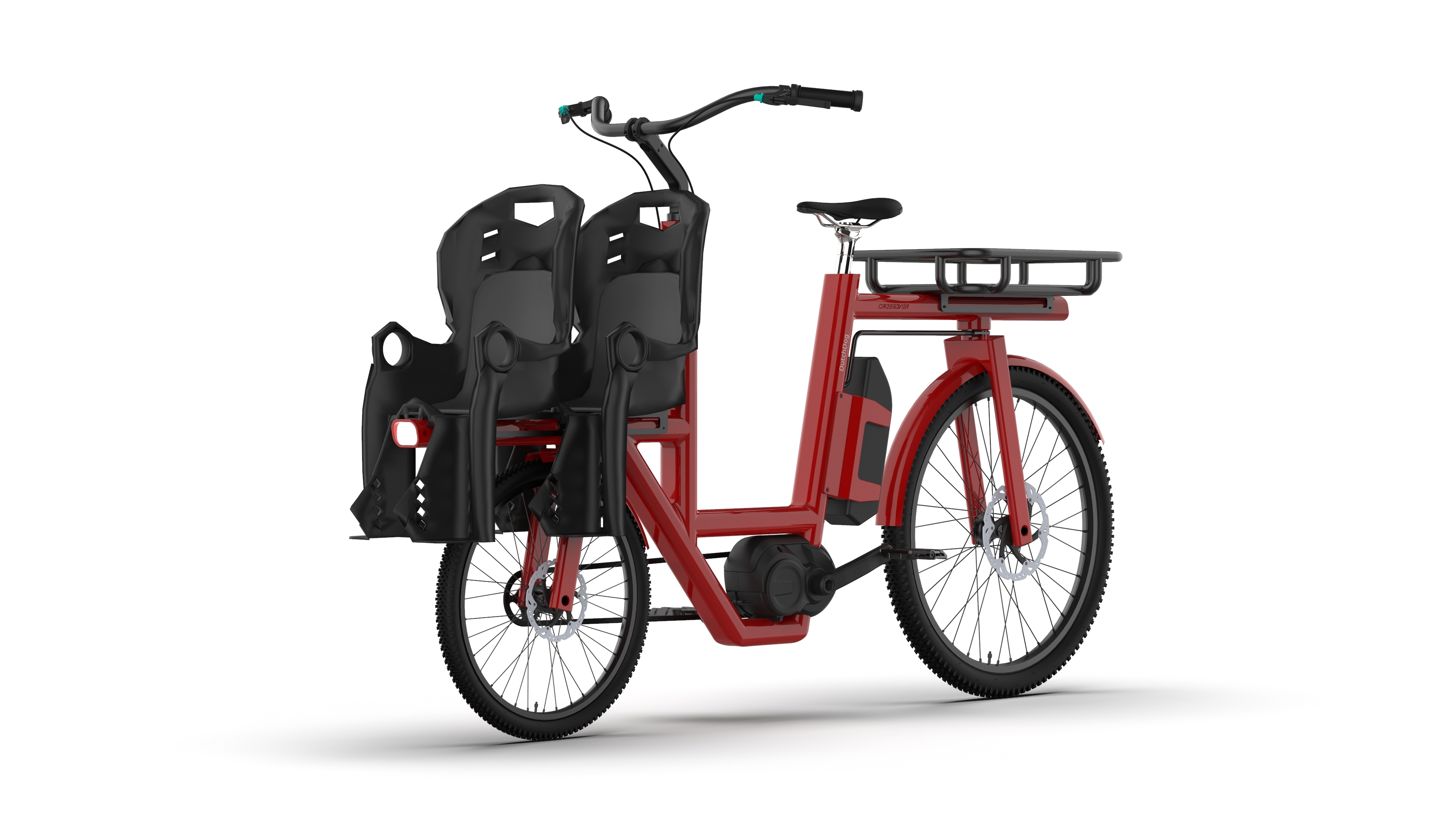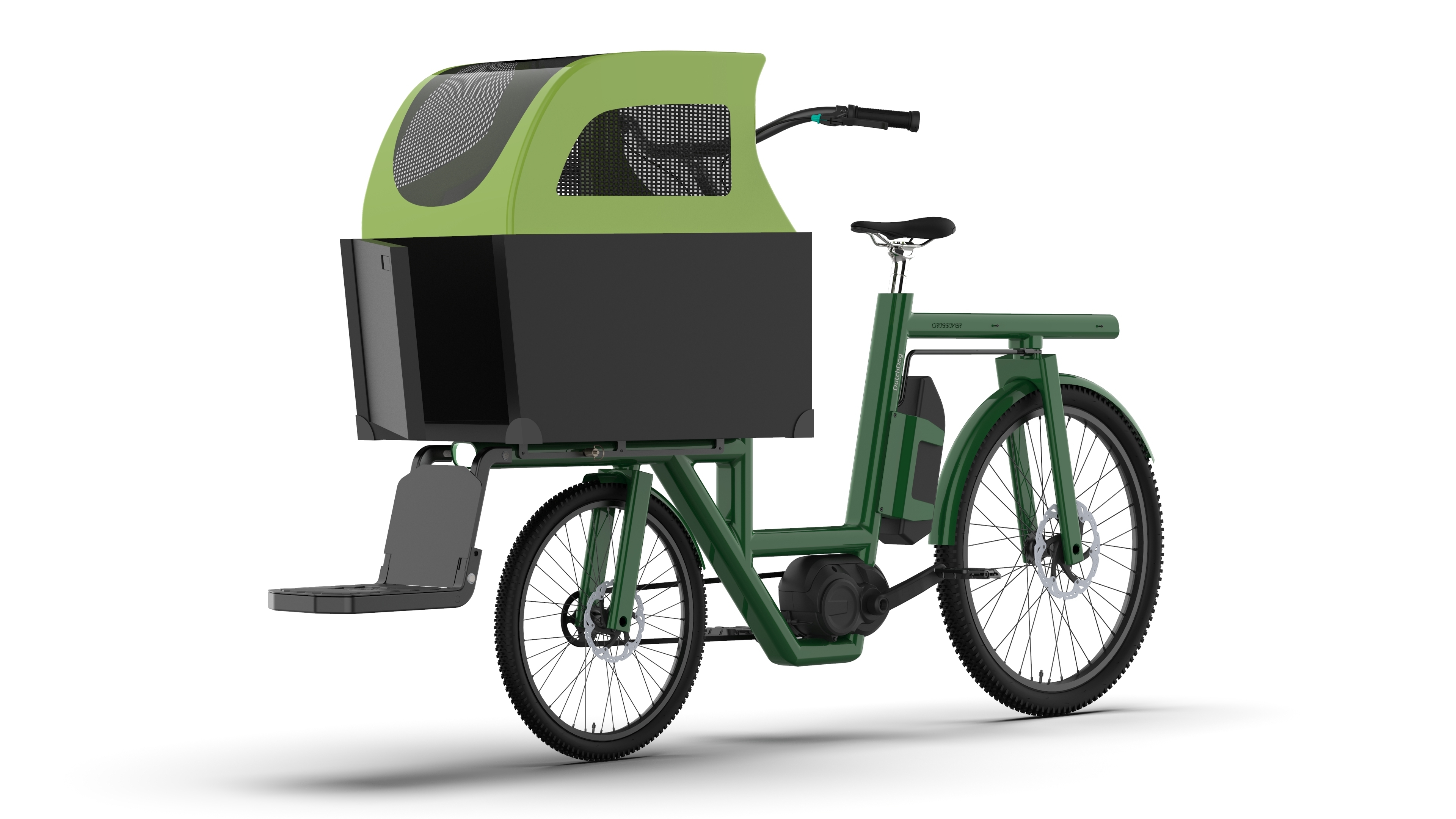 Product Detail The Crossover front-loading, rear-steering electric bicycle is designed for versatile, high-value cargo transport. It accommodates two children in child seats or on a bench with secure monkey bars, or can transport a pet in a cargo box equipped with a fold-down loading step. The modular cargo box is perfect for grocery runs or last-mile delivery.