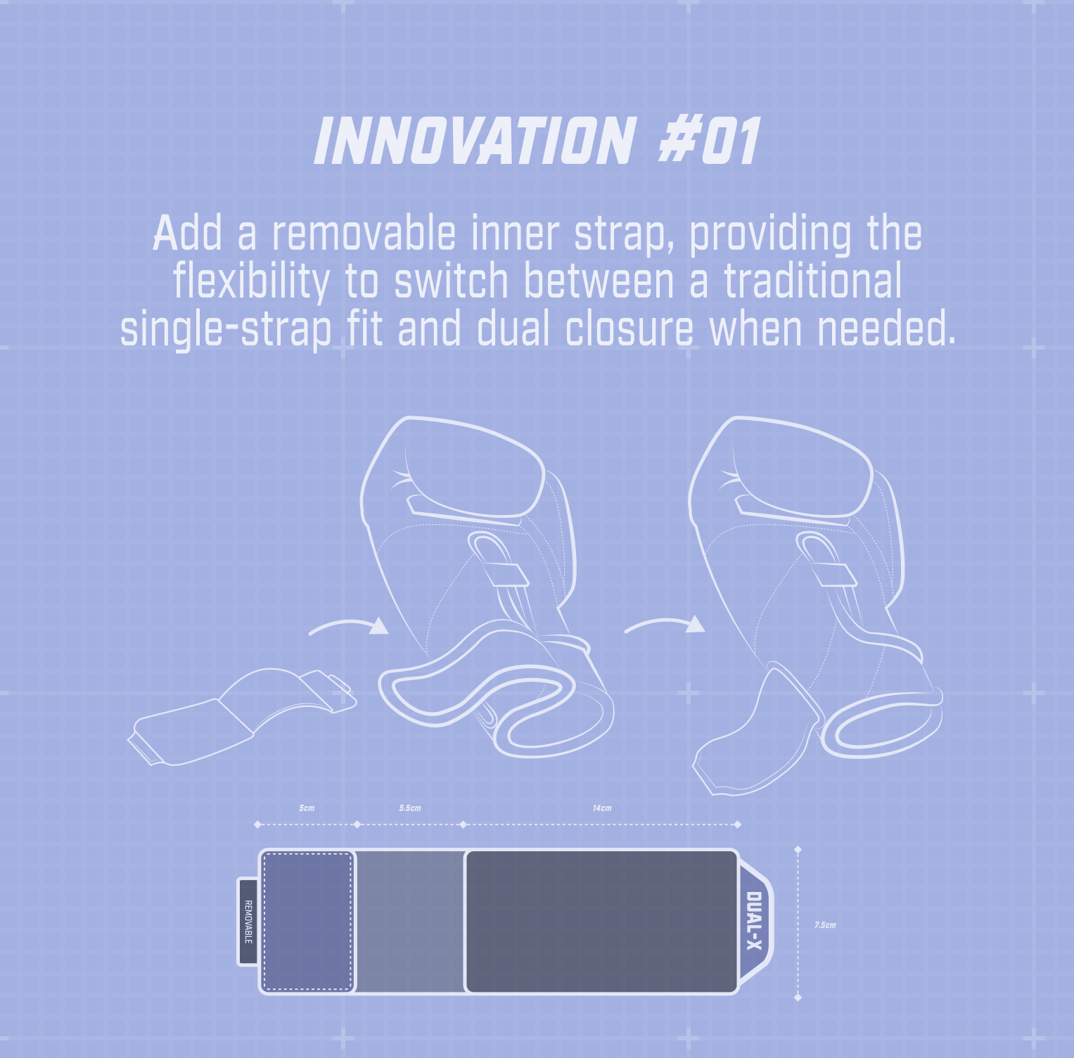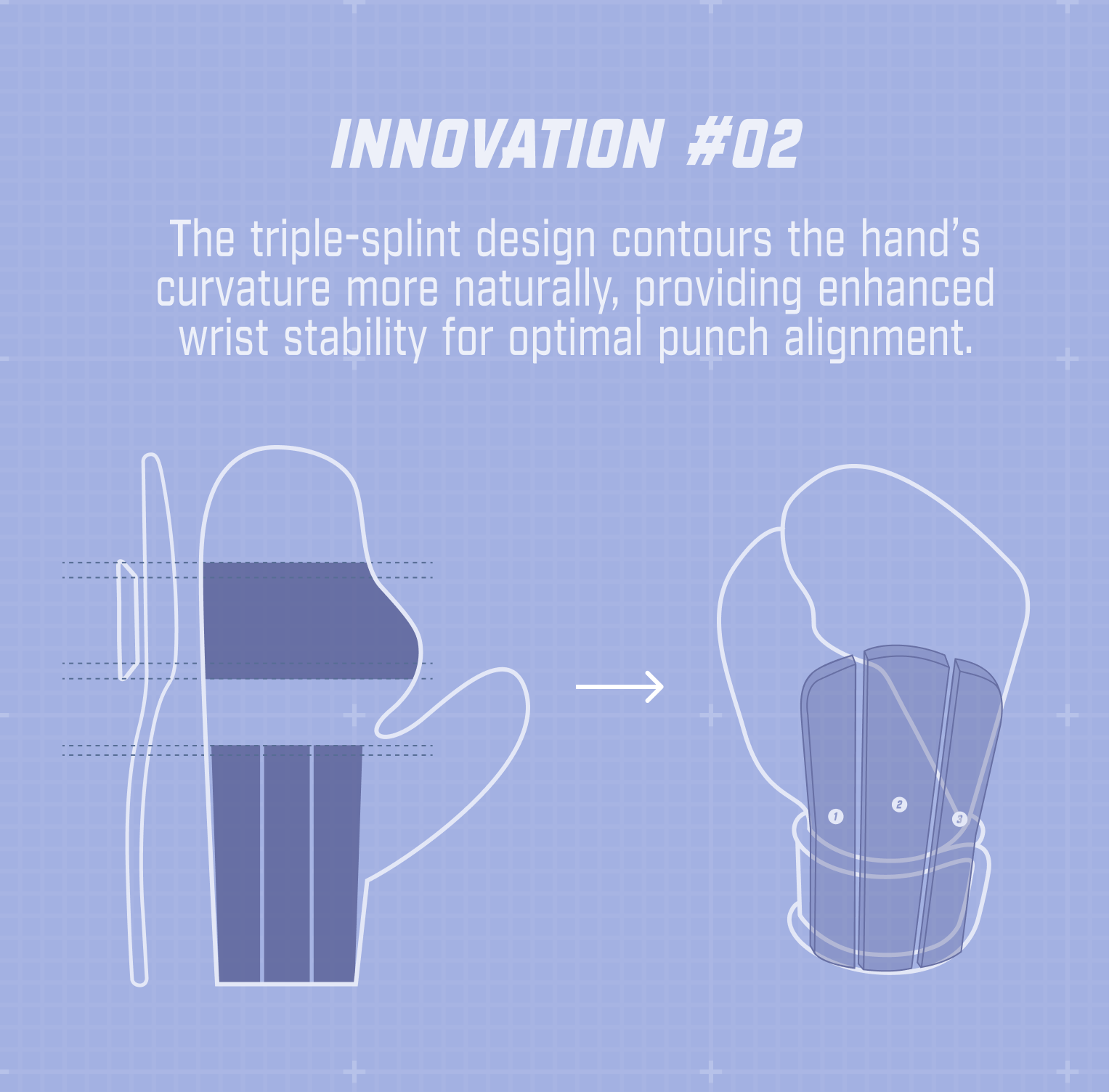 The T360 Boxing Gloves were engineered to feel like an extension of the hand through optimized internal channels that contour naturally with every strike. A layered foam structure with a built-in wedge positions the hand for optimal knuckle alignment, enhancing protection and power transfer. On the palm side, an angled ergonomic grip bar mirrors the hand’s natural curve when forming a fist, reducing strain, hand fatigue, and improving comfort during impact. Down the wrist, a triple-splint design reinforces alignment and prevents hyperextension. One of the glove’s standout features is its dynamic closure system, which includes a removable inner strap that allows athletes to customize the fit and level of wrist support based on their striking style—offering the choice between the secure Dual-X® configuration or a more traditional single strap. To protect the proprietary nature of this innovation, the T360 glove has been submitted for patent protection, reflecting our ongoing commitment to research, performance-driven design, and industry-leading innovation. Every element was purpose-built to set a new benchmark in high-performance combat gear.