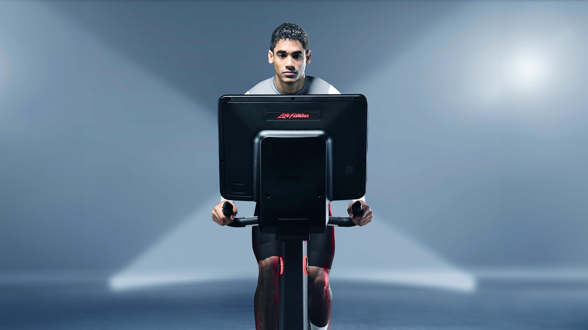 The first 2 in 1 upright cycle in the fitness industry. Seated or out-of-saddle functionality allows the SwitchCycle to be used as a traditional upright bike or a performance cycle. Seat and fore/aft handlebar position sensors trigger animations that guide exercisers to the ideal adjustment for their body type.