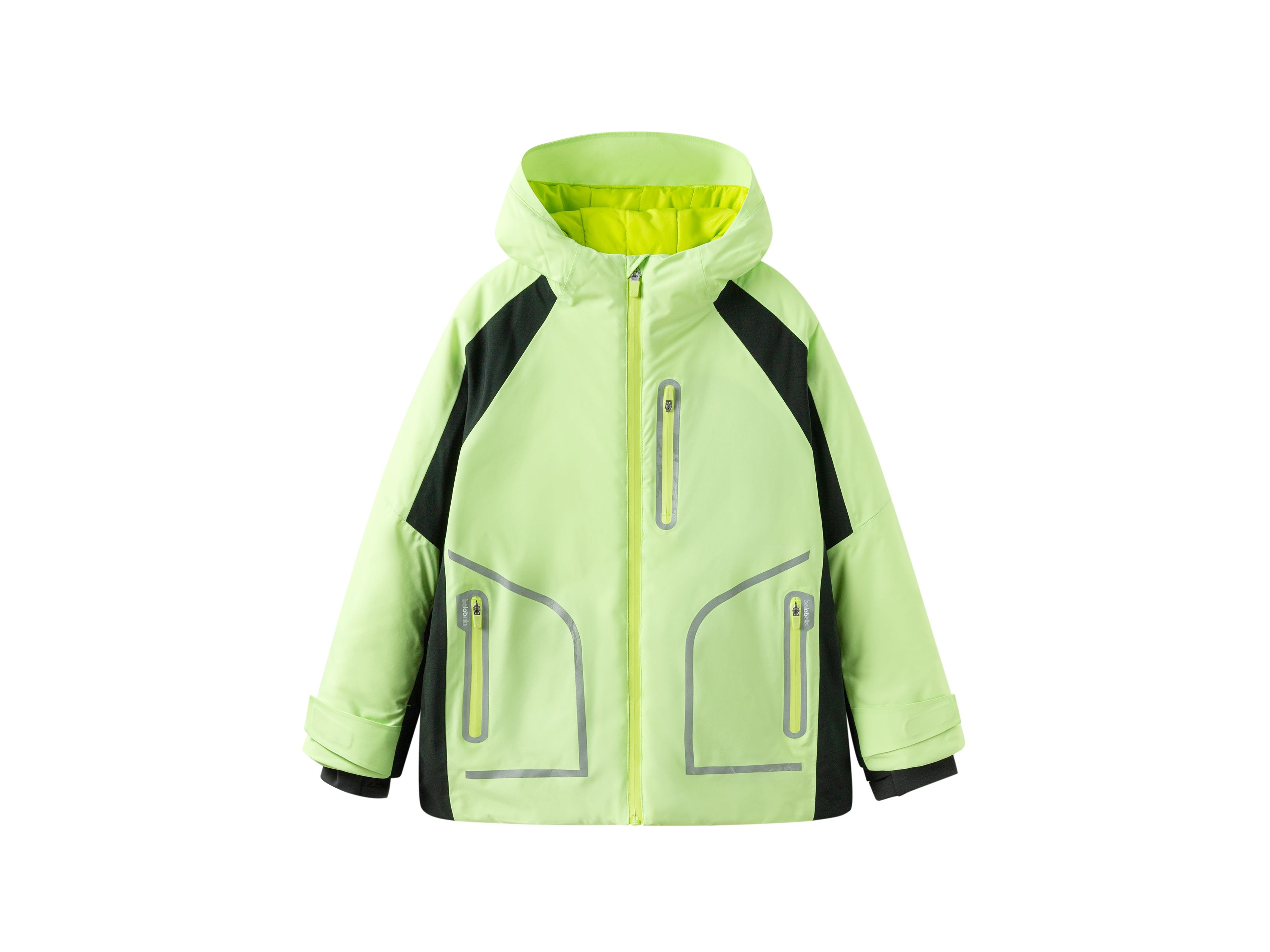 Product Detail Fabric: This product adopts eVent® waterproof composite fabric and ePTFE hydrophobic-oleophobic membrane to enable C0 IPX4 PFC-free DWR performance, with waterproofness of up to 8000mmH2O, the moisture permeability of 10,000g/(m²*24h), abrasion resistance of over 40,000 rpm (Martindale), securing great comfort and breathability during intense exercise such as skiing and providing an ideal protective solution for kids in complex weather conditions.
