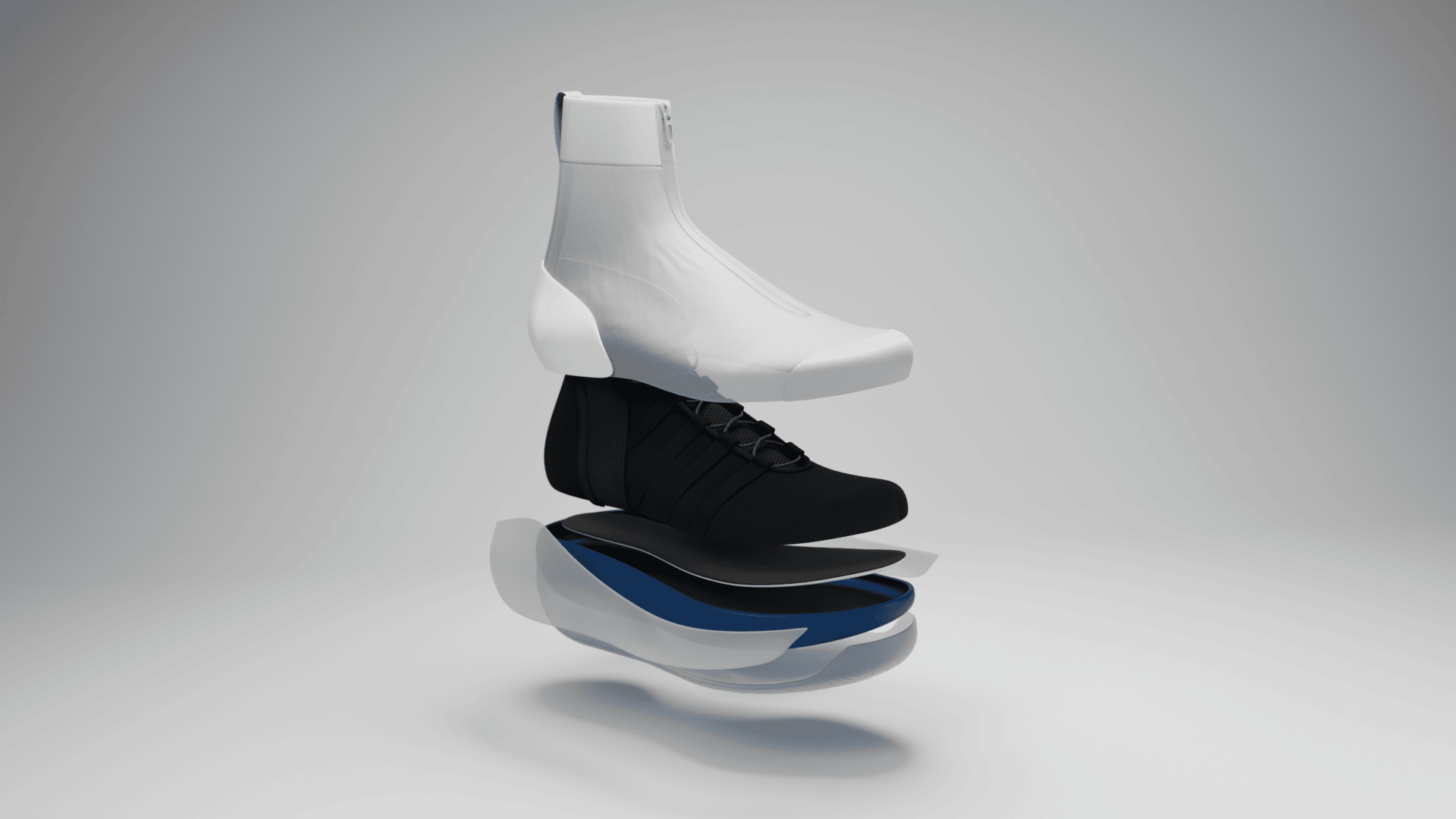 Innovation A patented design comprising of an internal bootie with ankle-stabilising technology, attached to an external upper. In addition to the 3-point ankle-stabilising technology, our shoes have a sleek shroud which looks radically different to other court sports shoes and has a futuristic feel.