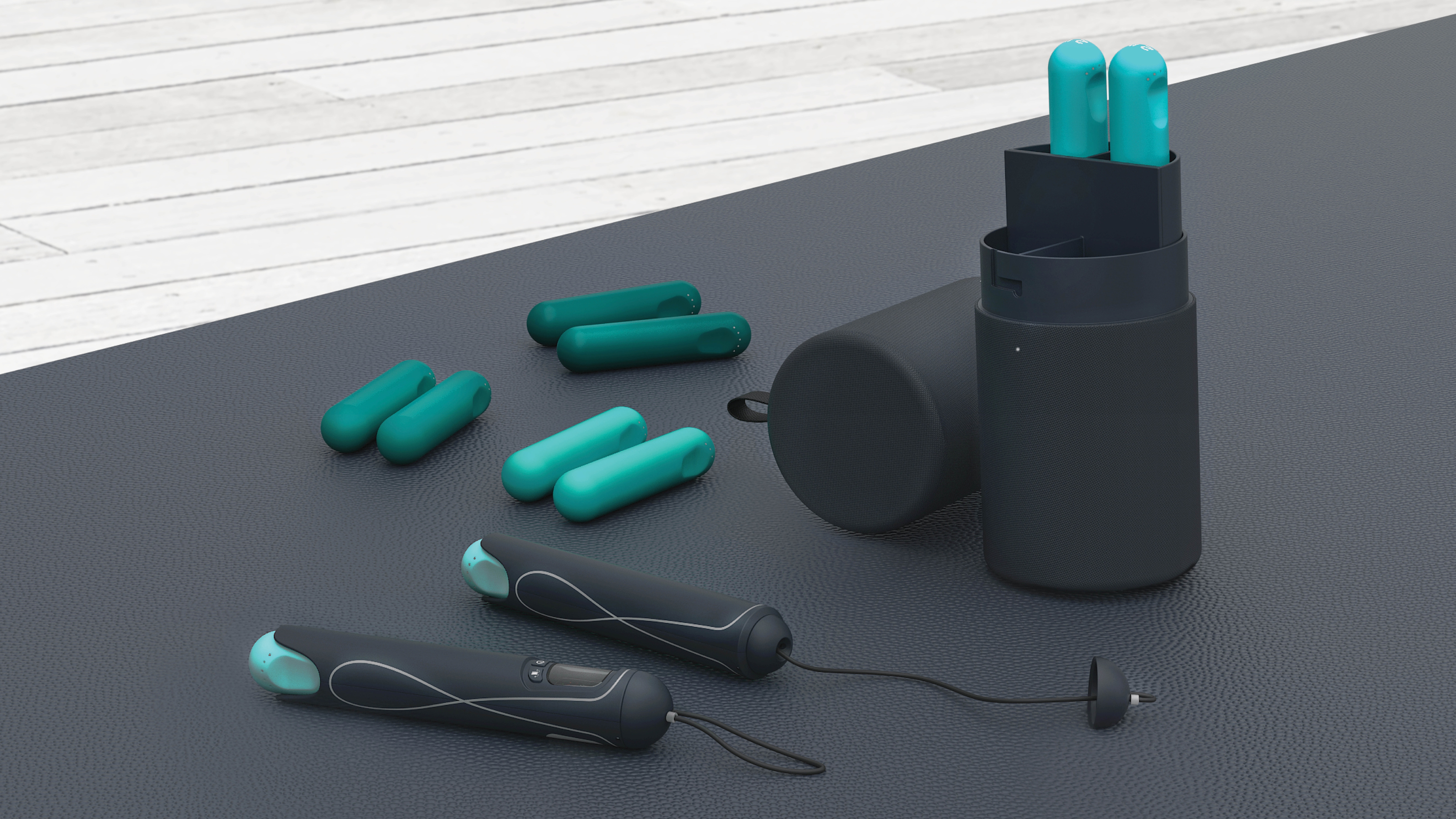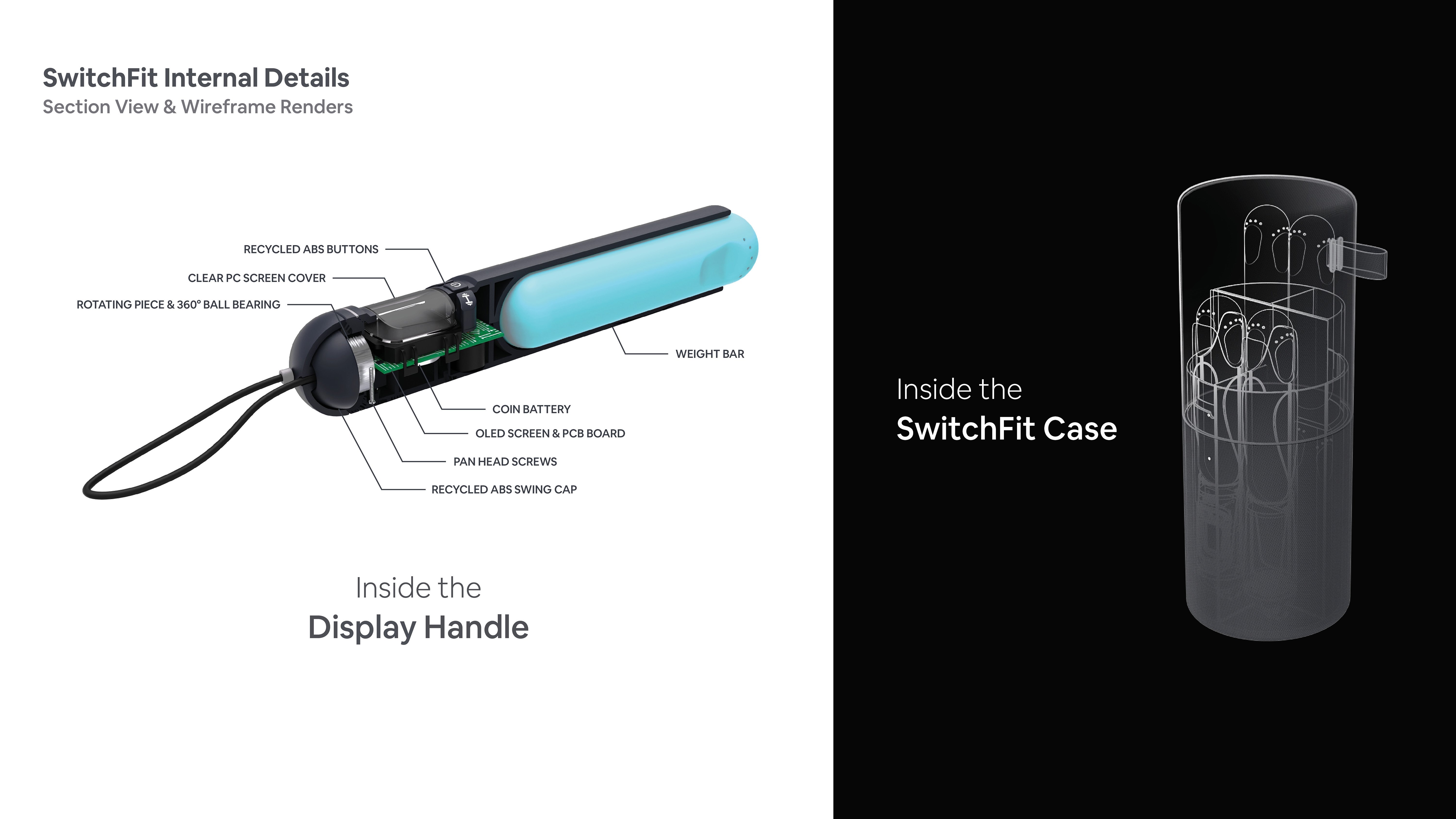 Innovation SwitchFit seamlessly combines two popular urban exercises—jump roping and weight lifting—into one versatile tool. The smart handle tracks workout stats and offers two different modes, allowing users to easily switch between cardio and strength training. With adjustable weights (1–3 lbs, plus optional 4 lb and 5 lb weights), users can customize the intensity of their workouts. The device also syncs with existing fitness apps to track progress, set goals, and send reminders to motivate users. Compact and space-efficient, SwitchFit is designed for busy, urban lifestyles.