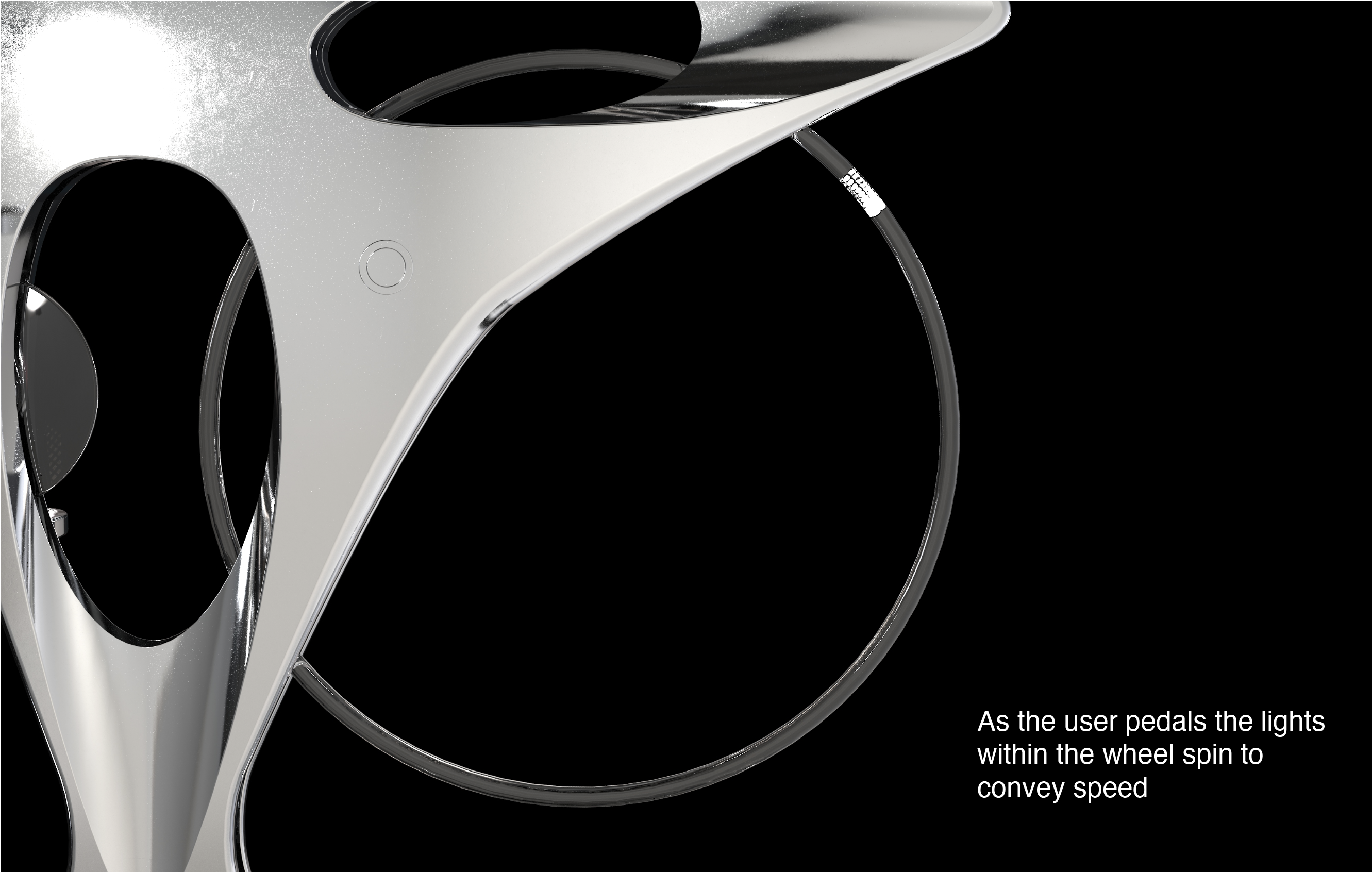 Iris incorporates a dynamic lighting system in its front wheel that not only helps convey the sensation of speed during a ride but also serves as an ambient lighting feature when the bike is idle. This dual functionality not only enhances the user experience but also integrates the equipment into the home environment more seamlessly.