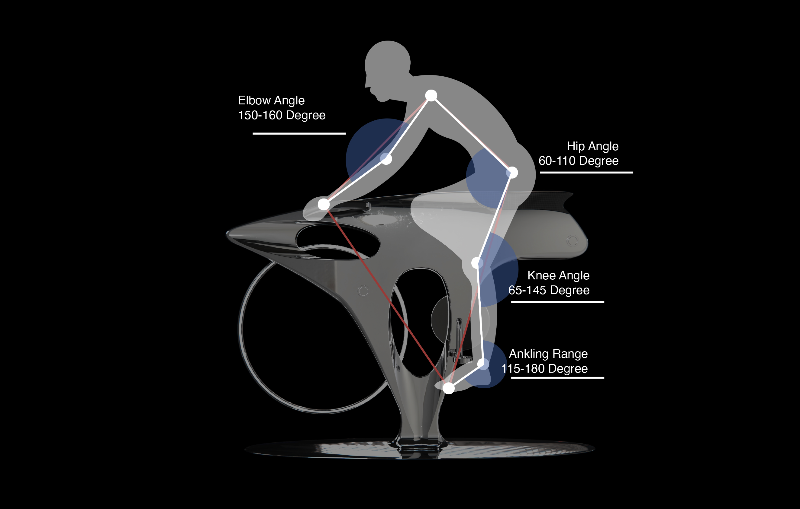 The bike's design closely emulates the biomechanics of a road bike, ensuring comfort through: