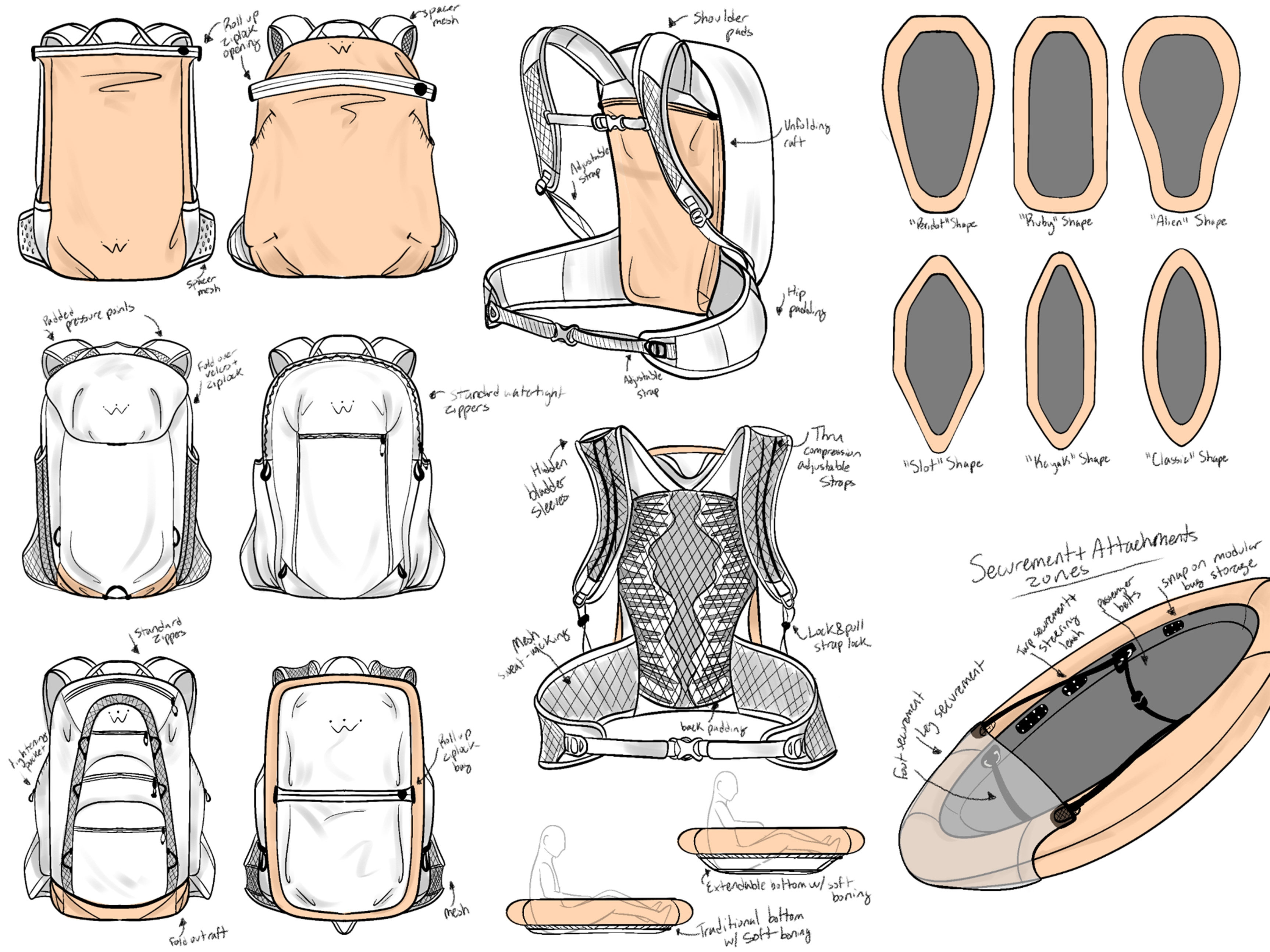 Innovation A 2-in-1 convertible equipment solution for dangerous flash flooding emergencies in a Southwestern U.S. climate. Built for the new and casual canyoneering and canyon hiking user, with optimized storage solutions for simple pack-in and pack-out day trips. The bag quickly unfurls into a single-person pack raft with removable storage to keep both the user and their belongings safe in the case of a flash flood emergency.