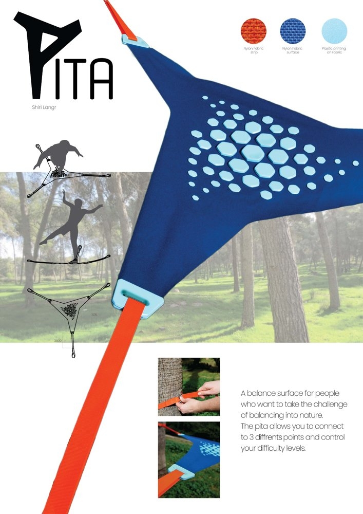 Innovation PITA introduces a new approach to outdoor balance training by utilizing a fabric-based, tensioned surface instead of rigid platforms. Unlike traditional balance boards or slacklines, its multi-point anchoring system allows for controlled instability, engaging core muscles, reflexes, and proprioception. The plastic-printed grip texture, with strategically placed height variations, enhances sensory interaction and guided movement, ensuring an instinctive and responsive user experience. The weather-resistant tarpaulin surface retains flexibility while maintaining durability, making it suitable for various outdoor conditions. Heavy-duty nylon ratchet straps allow for modular installation, enabling users to adjust height and tension for progressive skill development. The bold color contrast serves as a visual guide, reinforcing movement patterns and spatial awareness. Designed for portability and adaptability, PITA is lightweight, foldable, and quick to deploy, offering a versatile, skill-building experience in any outdoor setting.