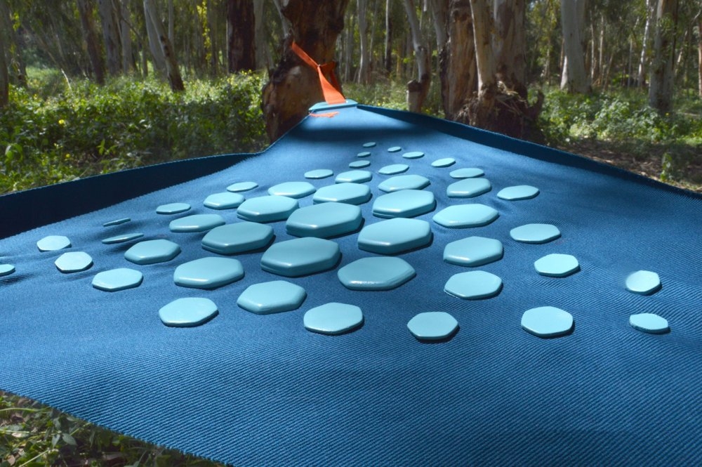 Description PITA is an innovative outdoor balance training product designed to enhance stability, coordination, and core strength through a flexible, fabric-based structure. Its tensioned textile surface, secured by heavy-duty nylon ratchet straps, creates a dynamic instability that challenges users in an engaging way. The plastic-printed hexagonal grip bumps provide tactile feedback, ensuring correct foot placement and improved balance control. The weather-resistant tarpaulin fabric ensures long-lasting durability in outdoor environments while retaining the necessary flexibility for controlled movement. Designed with high-contrast colors, PITA offers clear visual guidance, making it intuitive for users to position themselves. Its lightweight and foldable design enables effortless transport and quick setup, making it an ideal tool for both recreational and structured balance training in outdoor environments.