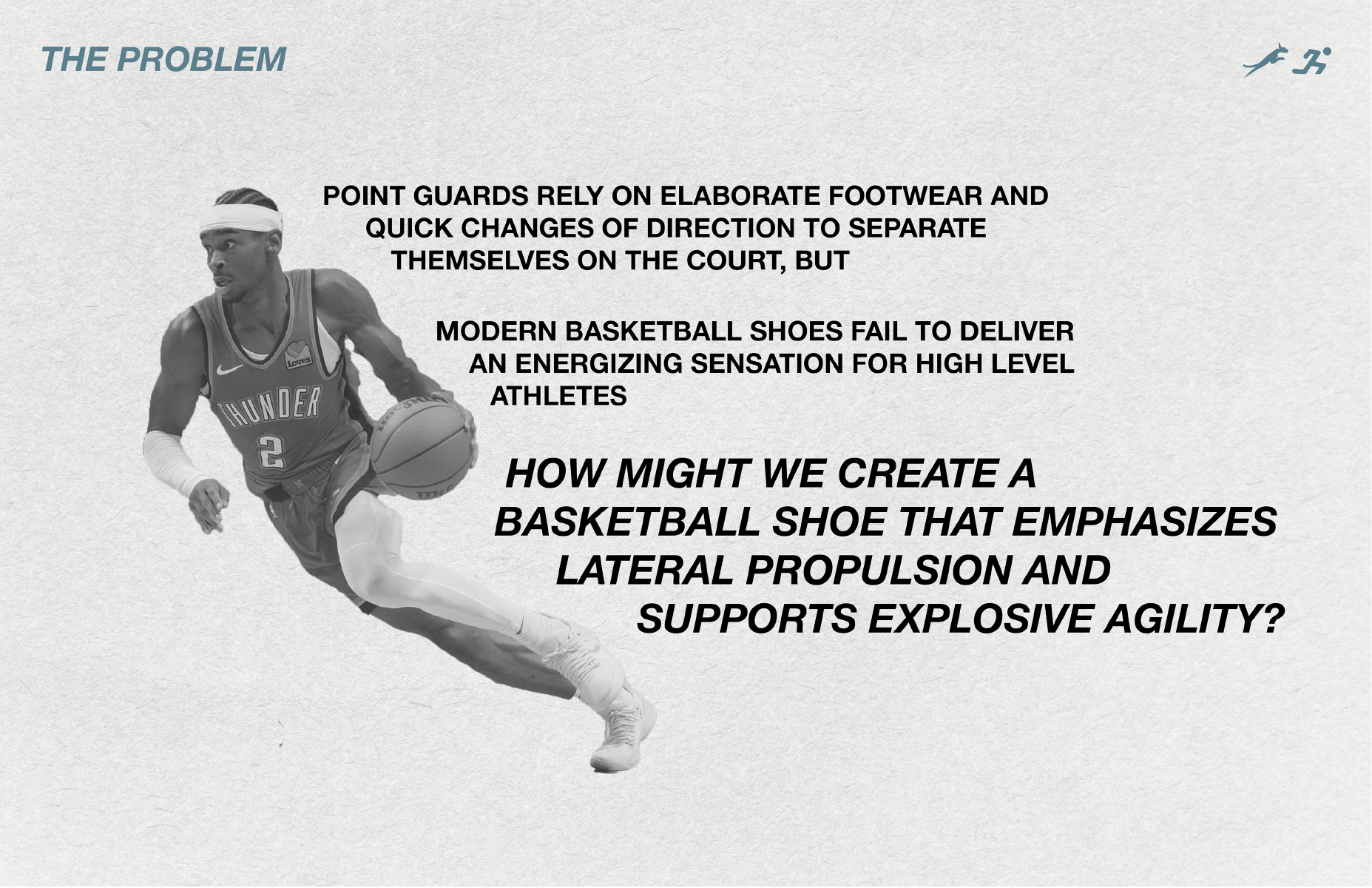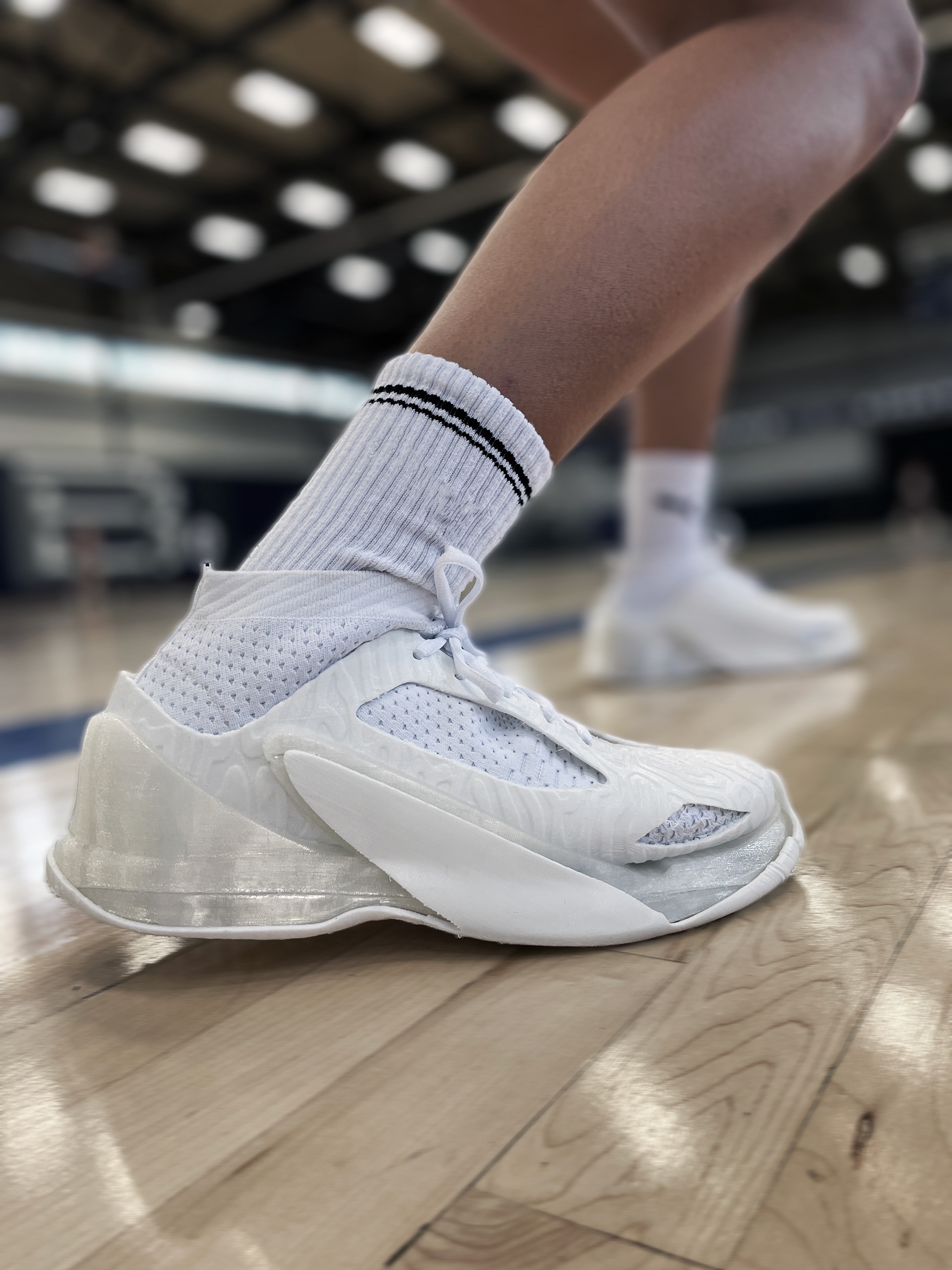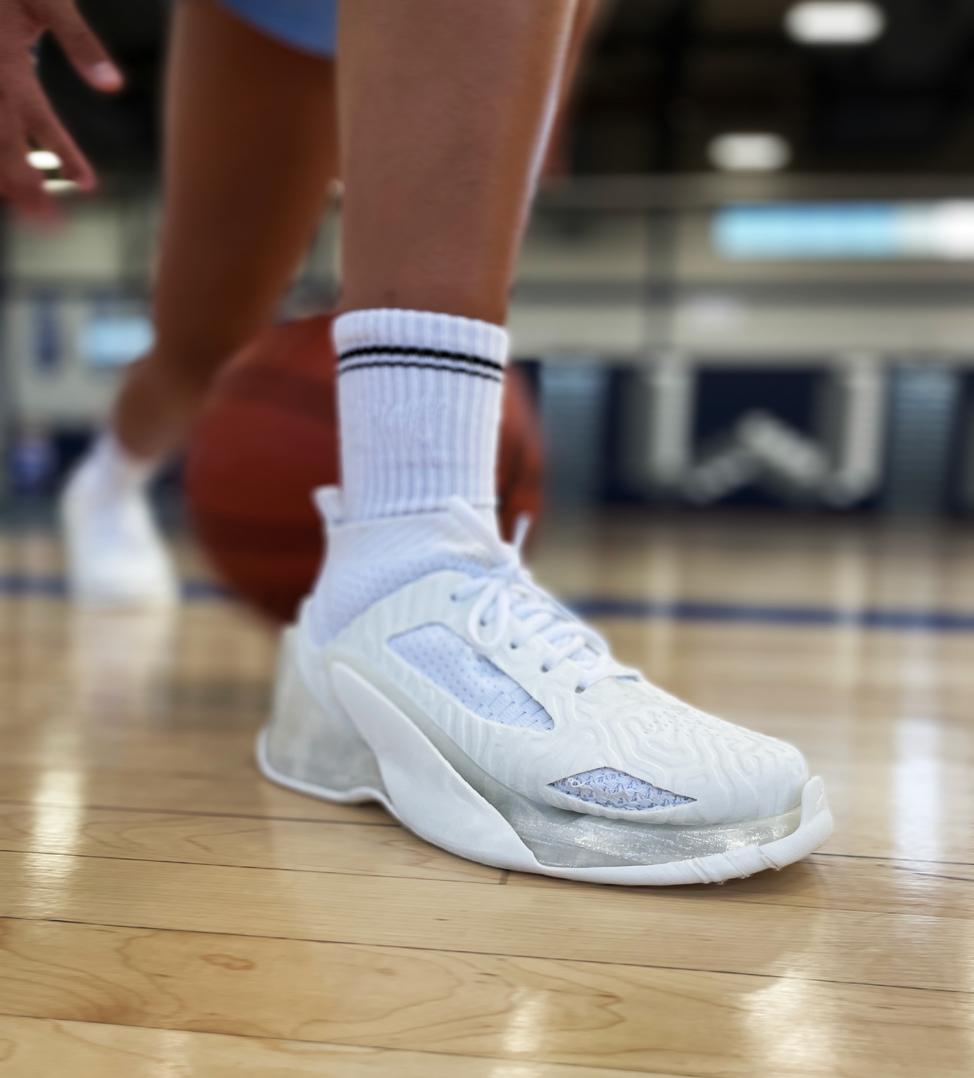 CARACAL is a game day basketball shoe designed for point guards. Designed with lateral rods embedded across the forefoot of the midsole, CARACAL emphasizes lateral explosive movements. CARACAL mimics modern "super shoe" carbon plate technology but rotates the user's force horizontally.