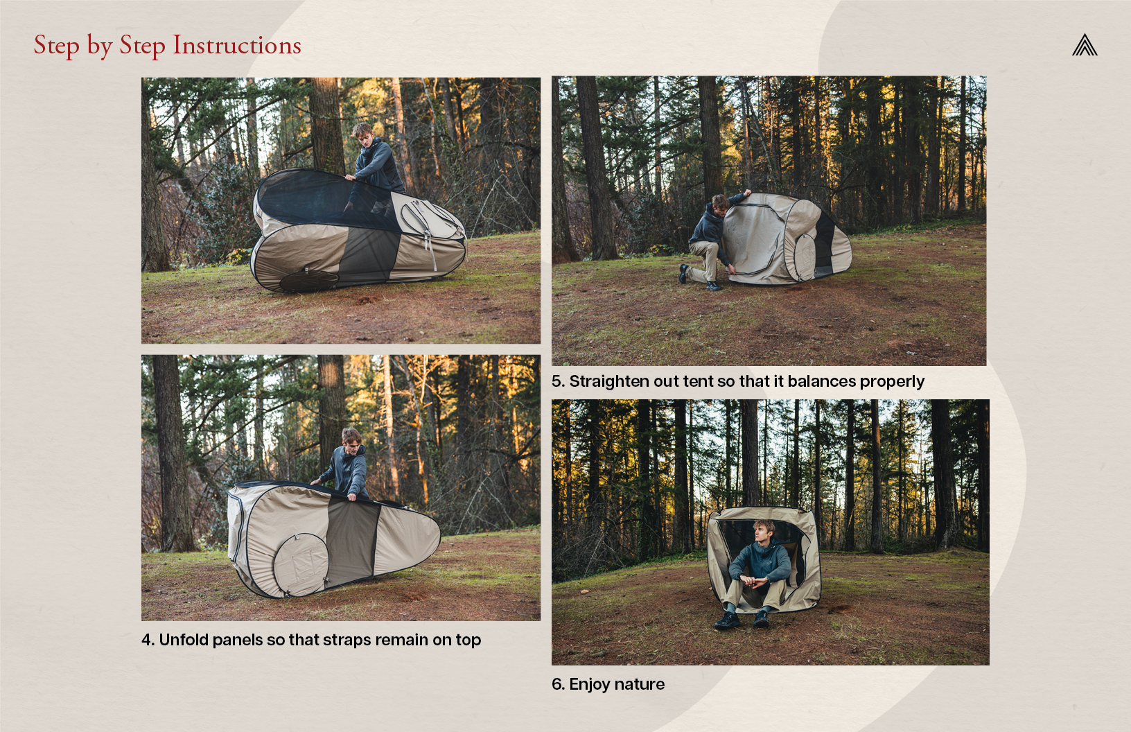 Description hōm combines sleek design with innovative pop-up functionality, allowing first-time campers to set up a luxurious, spacious tent in under a minute. With a simple release mechanism and a foldable steel frame, the tent effortlessly springs into place, making camping fun and stress-free. Crafted from premium materials, hōm offers a refined, high-performance solution for those seeking adventure with style and ease. Perfect for new campers who want comfort, simplicity, and a touch of elegance in their outdoor experience.