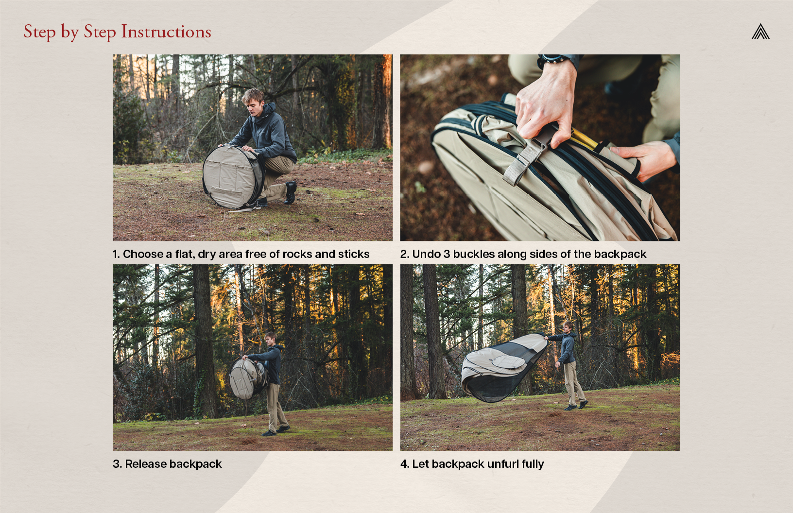 The hōm backpack-to-tent system introduces a pop-up tent design that enhances the camping experience by allowing setup in less than a minute. This innovative feature is perfect for new campers, making the process quick, easy, and even fun. With a simple release mechanism, the tent effortlessly springs into place, supported by a collapsible aluminum frame that locks into position. This pop-up nature removes the frustration of complex assembly, allowing campers to spend more time enjoying their surroundings. The system’s minimalist design and premium materials ensure a refined experience, offering both ease of use and elegance in a compact, high-performance package. Whether it’s a quick weekend getaway or an extended outdoor adventure, hōm provides a stress-free and luxurious camping solution, ideal for those new to the outdoors who still want to enjoy a sophisticated, hassle-free setup.