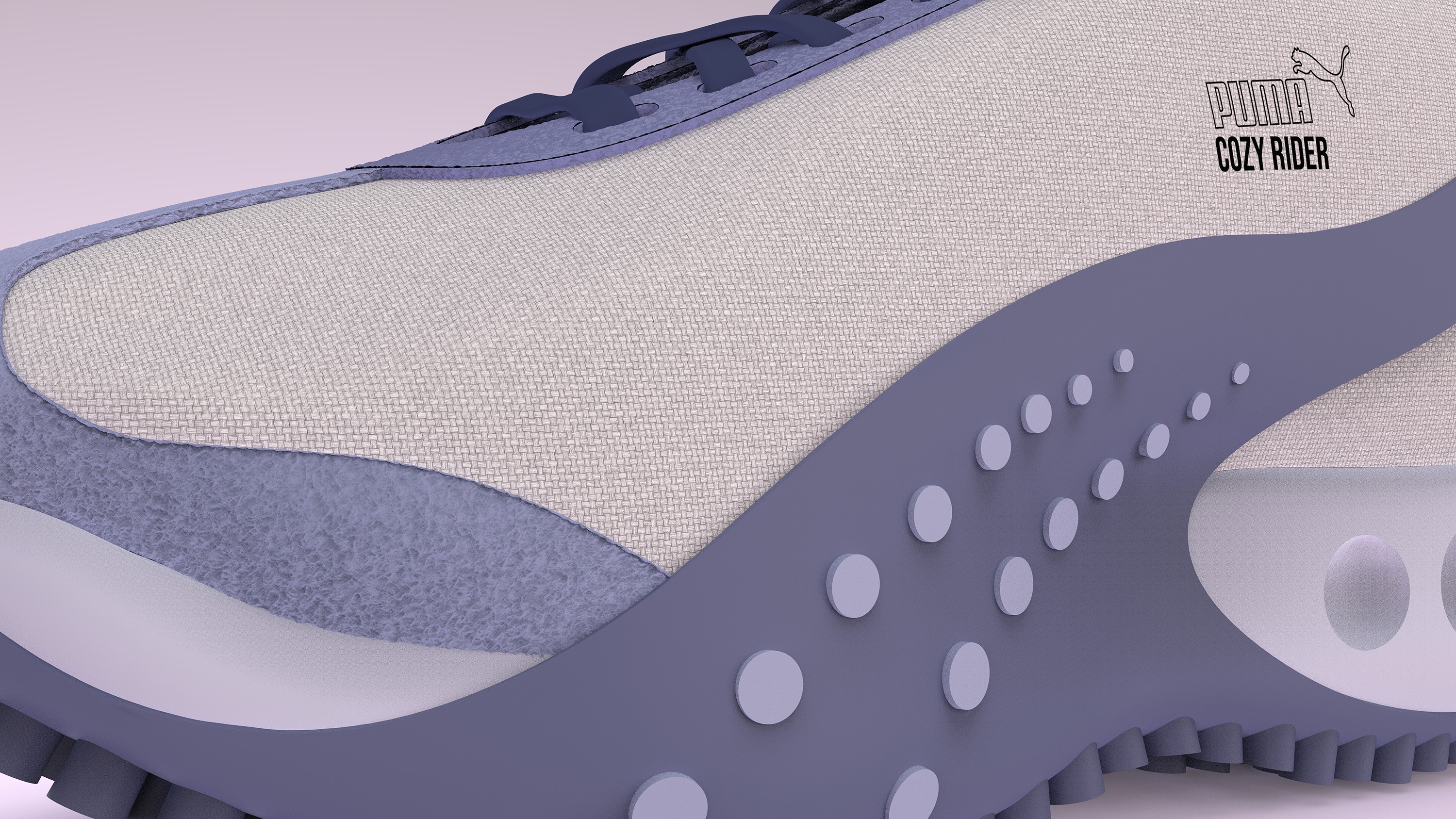 Innovation Puma consistently stands out from a sea of competitors through their ability to innovate. An early example of this innovation is the Easy Rider.Invented in 1977, the Easy Rider sought to reduce injuries in long-distance runners. Its creation spawned an entire line of shoes known as theRider Family. As time has passed, the shoes have shifted from their athletic roots to focusing on streetwear stylings. Thus we created ‘CozyRider’ to merge the Easy Rider of the past with the Rider family of the present day. Honouring Puma’s commitment to safety and comfort while maintaining streetwear trends, ultimately designing a comfortable but stylish shoe, designing the potential next generation of the Rider Family.