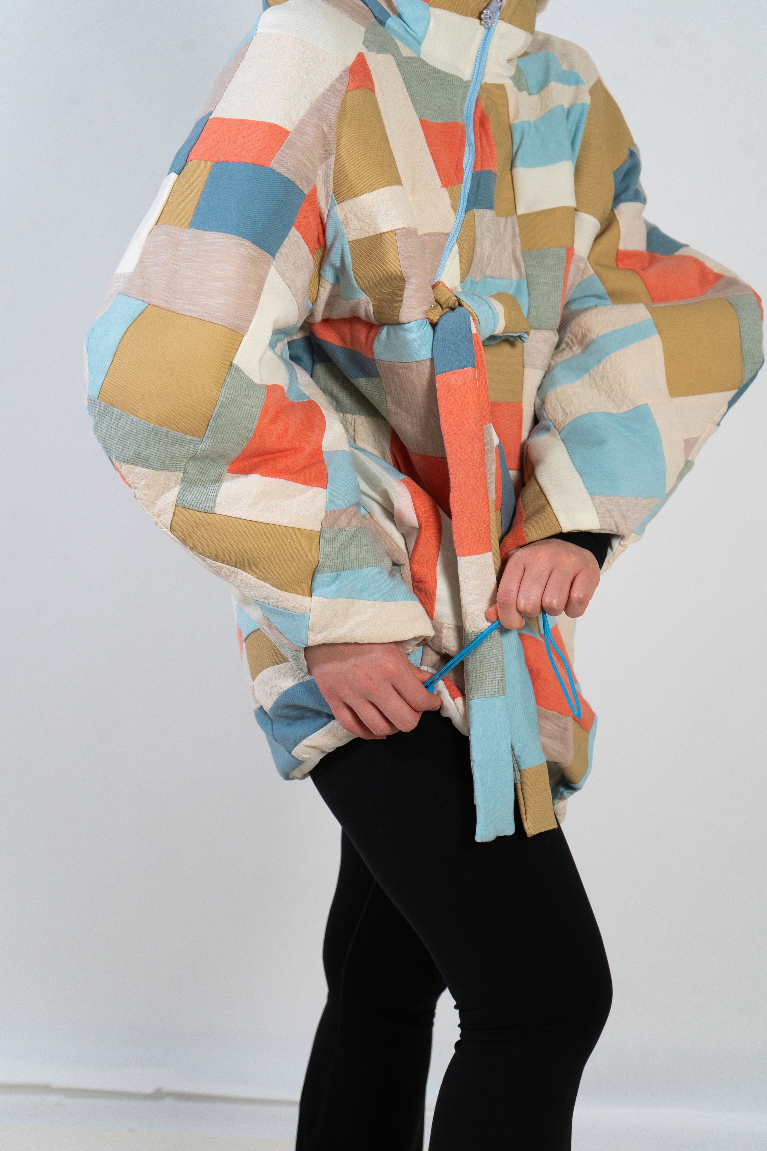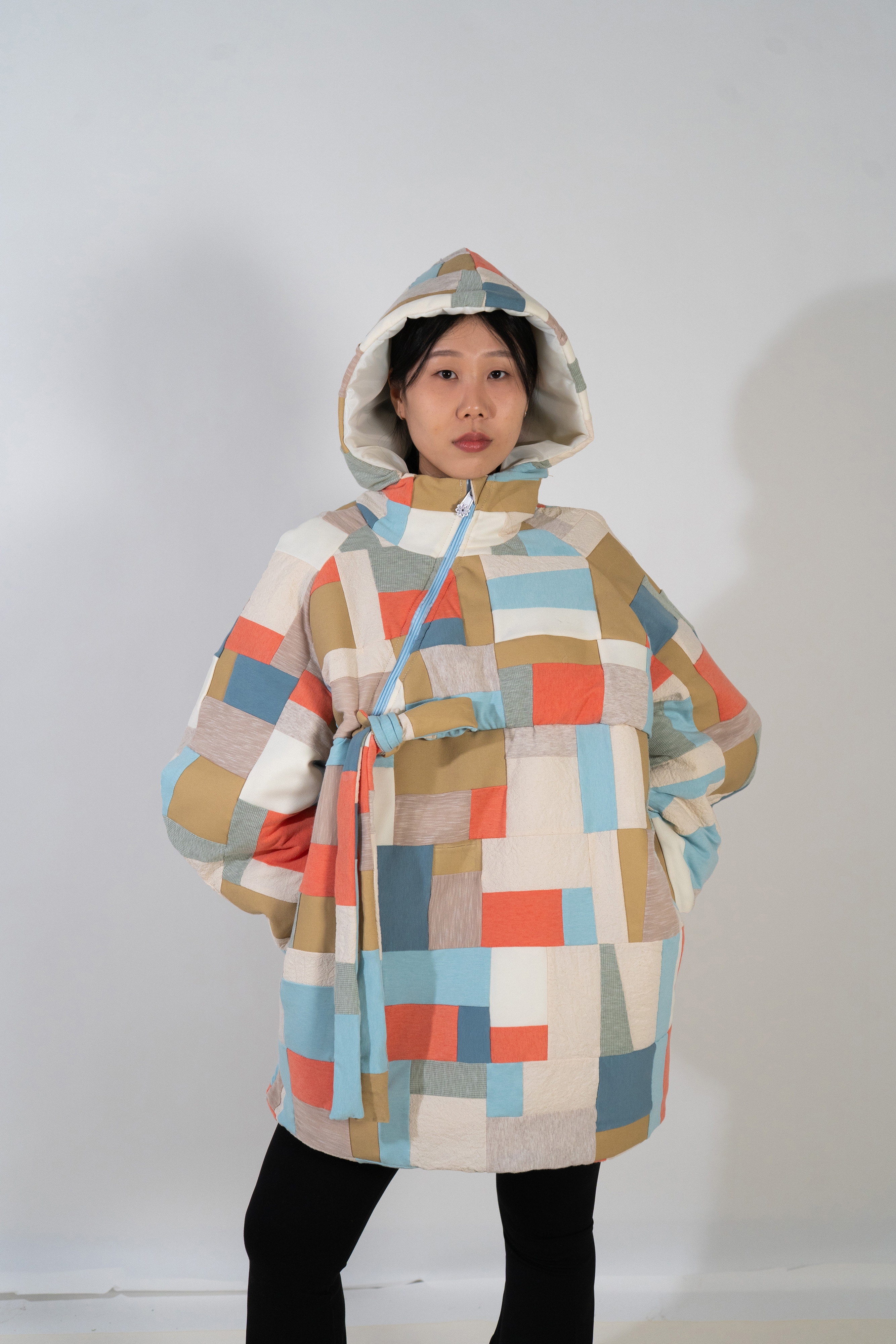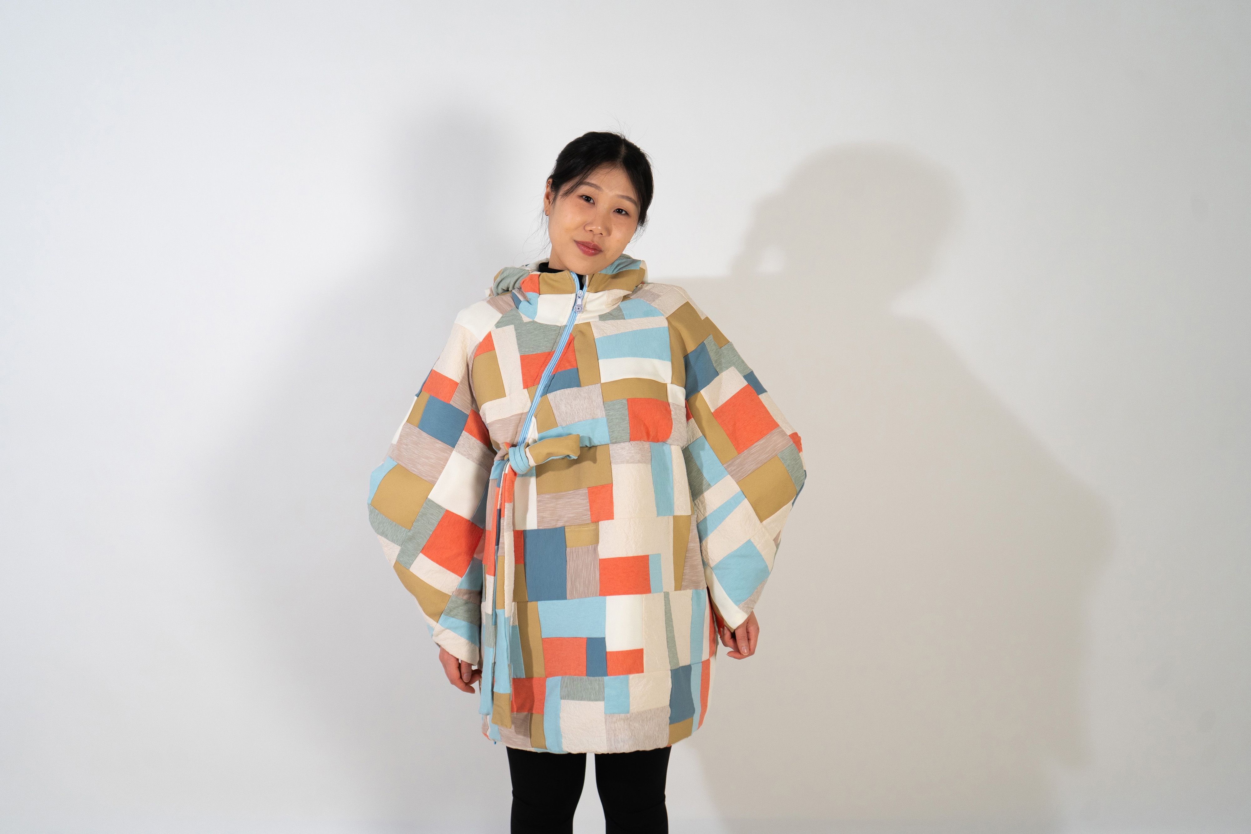 Innovation Billowing, asymmetrical, dreamy, cultural, and warm. The Jogak Jacket challenges the traditional fit and silhouette of commercialized outerwear. It honors the rich cultural traditions of the Korean Hanbok, features a drapey oversized hood and dramatic balloon sleeves, all the while keeping you cozy as if you were wrapped up in a thick, quilted blanket.