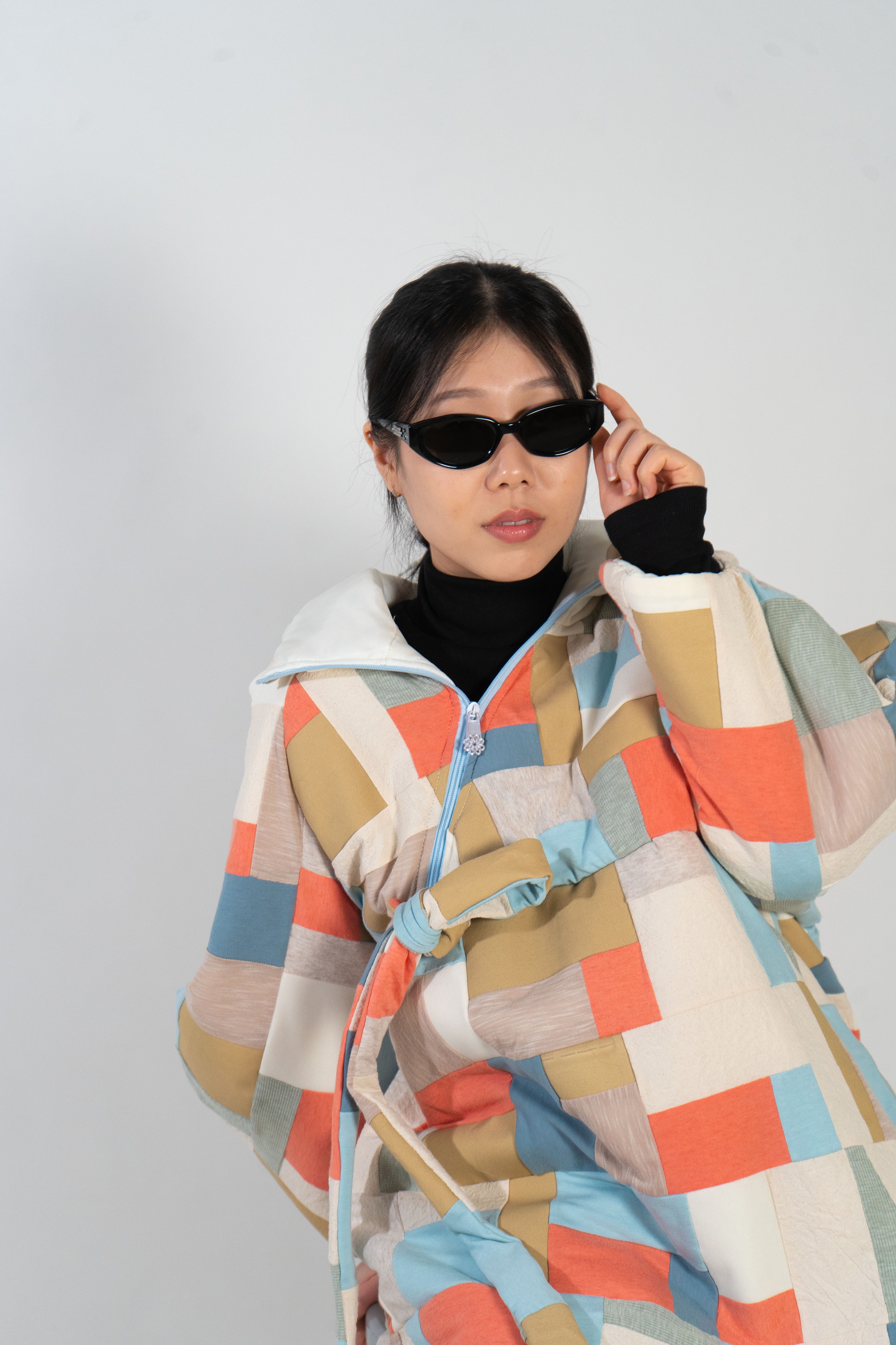 Description The Jogak Jacket is designed to be a centerpiece in a Heritage Collection by two-time Gold Olympian snowboarder Chloe Kim to celebrate her Korean-American identity through fashion and sustainability. It is inspired by the silhouette of the Hanbok, the Korean traditional garment, and follows the practice of Jogakbo, a Korean style of patchwork made from leftover fabric scraps. Pieced into whole, this jacket embodies Chloe Kim's multifaceted identity and breathes new life into old material.