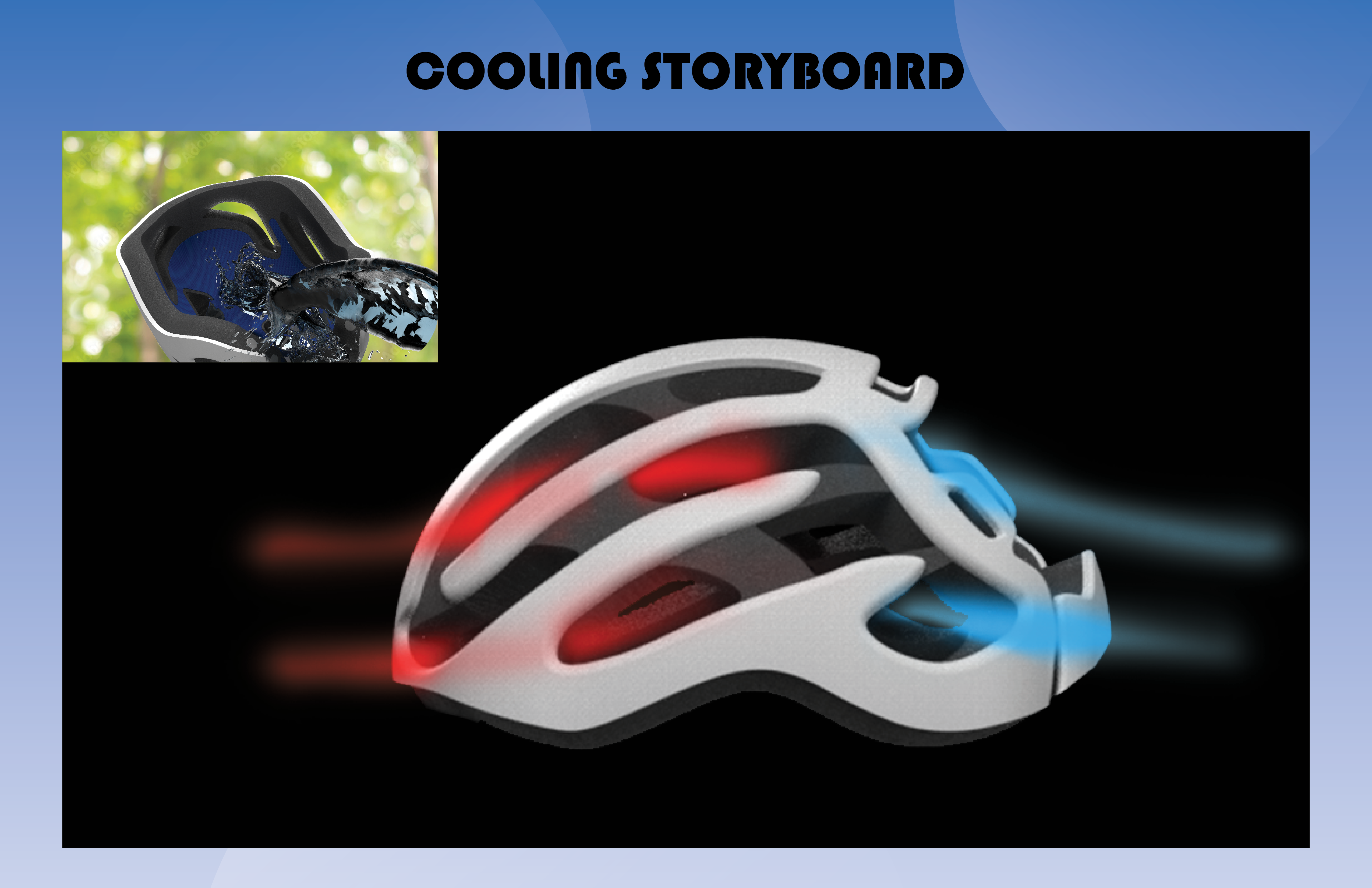 Innovation Incorporates a cooling system while cycling and allows for easy hair management as well.