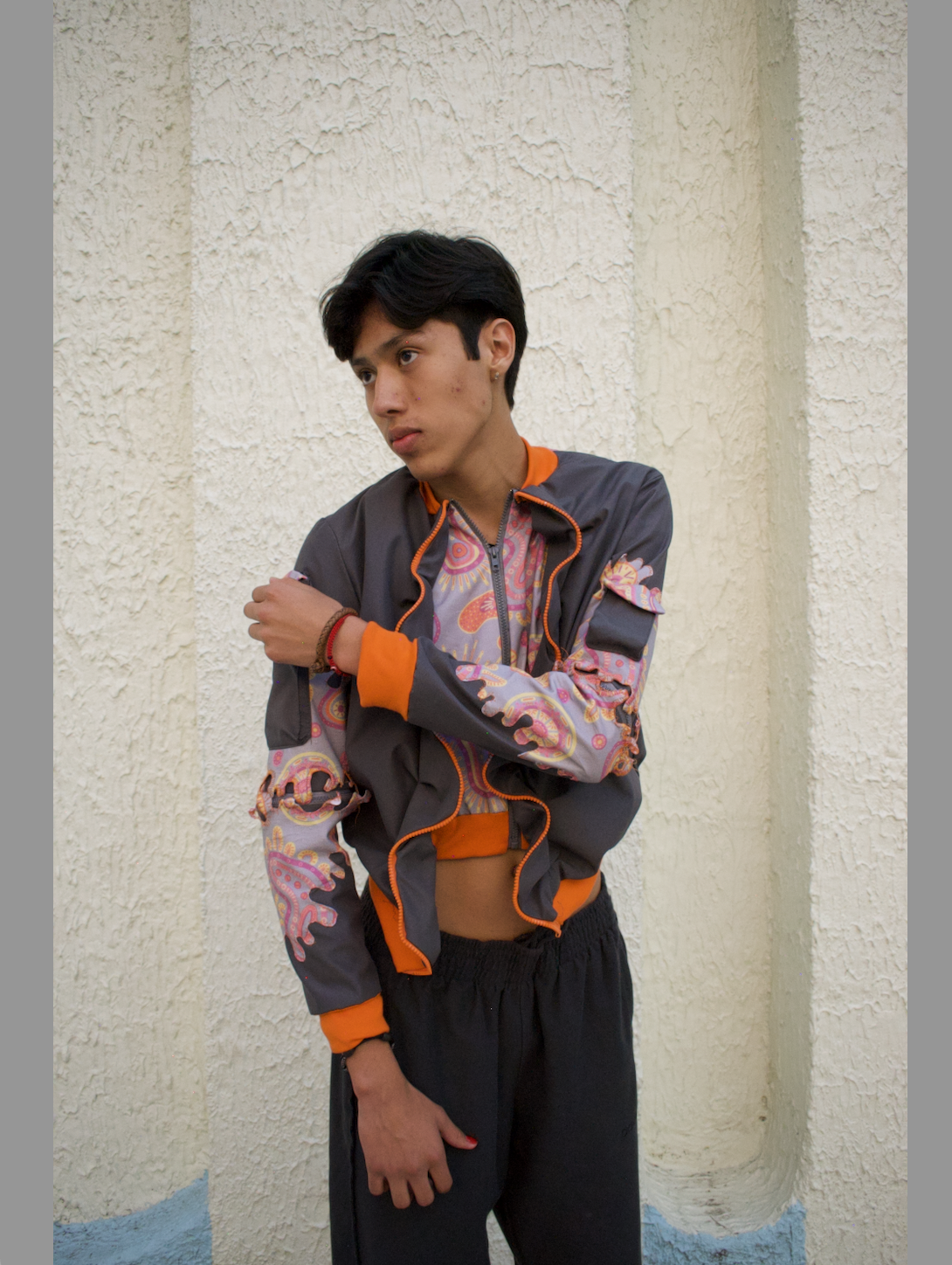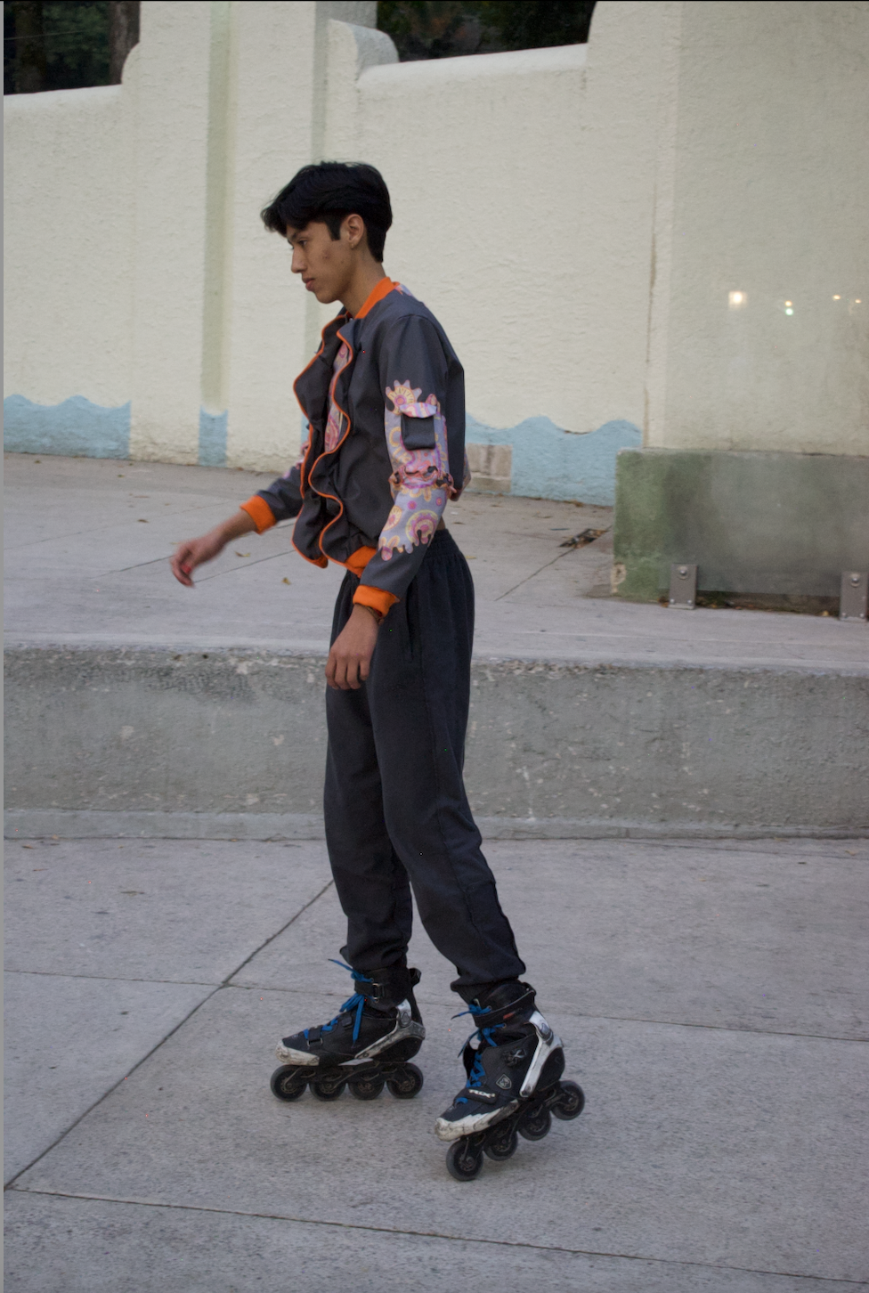 A jacket was made that was functional for those who wear it, so bags for their electronic devices and accessories were added, located in strategic areas such as the arms, so that they do not hinder movement when skating. Regarding security, two zippers were placed in the elbow area for the placement of encoders without having to remove the entire jacket, making its use practical and easy. It also has a rear pocket for more storage space.