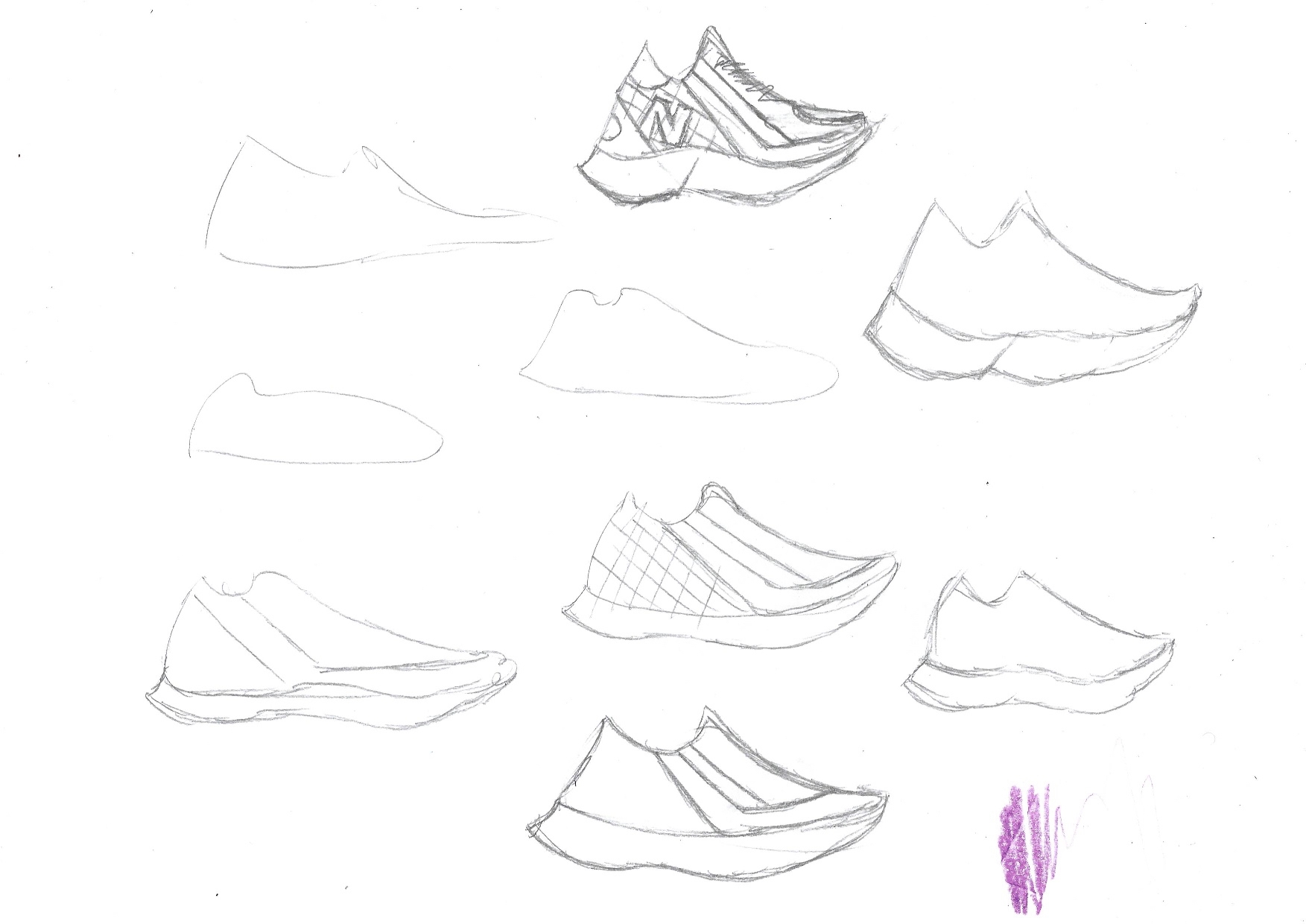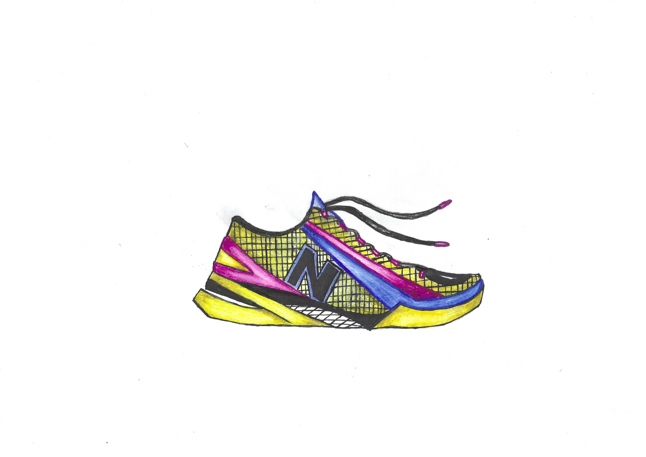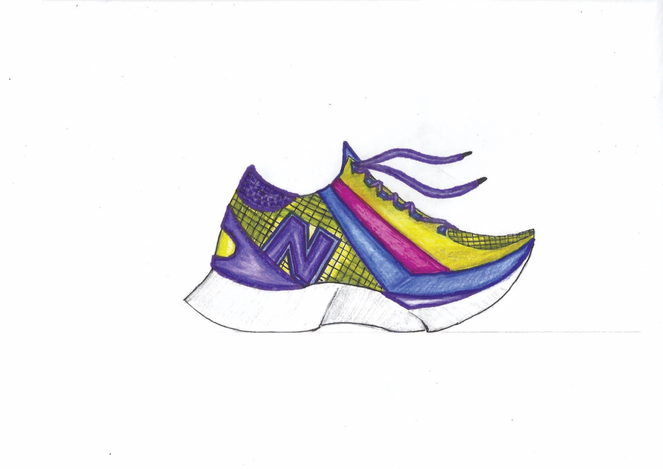 Description The New Balance Burst running shoe design was my entry for the 2021 New Balance Designing with Sole class held by Pensole. I started out with a very abstract construction but after going through the course I found new and innovative ways to revamp my design for the final submission. I felt that one of the best adjustments to make to this shoe was to provide a way to keep the runner comfortable while also providing support through shock absorption. This is where this midsole got abstract aesthetically but also practical in that it provided a "spring" for the runner. Along with this, I decided that the shoe should have lightweight materials (leather and mesh) to provide the runner with ease as they run. As far as the color selections I wanted to provide consumers with something vibrant and speedy so I went with yellow and magenta. Also grounded the design with hits of black and blue. This color way was also inspired by the concept of CMYK.