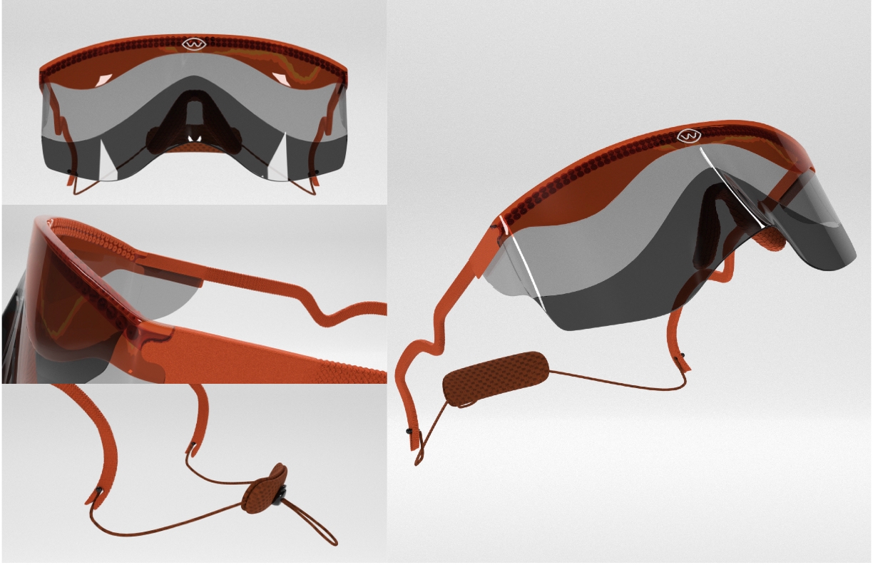 Innovation The Wave Rocker sunglasses redefine performance eyewear by blending biomimicry with cutting-edge design. Inspired by the adaptive nature of chameleon arms, the temple grips and sunglass arms conform to the wearer’s head, providing a secure, custom fit during intense movement and heat. The lenses draw from the cuttlefish's ability to adjust vision based on light, offering photochromic technology that adapts to changing environments, ensuring optimal clarity in harsh desert conditions. Hydrophobic, oleophobic, and anti-reflective coatings enhance visibility, while UV400 protection ensures eye safety. The frame’s aerodynamic contours and ventilation channels minimize fogging, allowing for a clear view even in extreme temperatures. Built for ultramarathon runners, the sunglasses feature lightweight, durable materials that offer comfort, flexibility, and a slip-free fit, making them ideal for high-performance activities. Wave Rocker combines nature-inspired design with modern technology, providing athletes with an innovative eyewear solution for challenging conditions.
