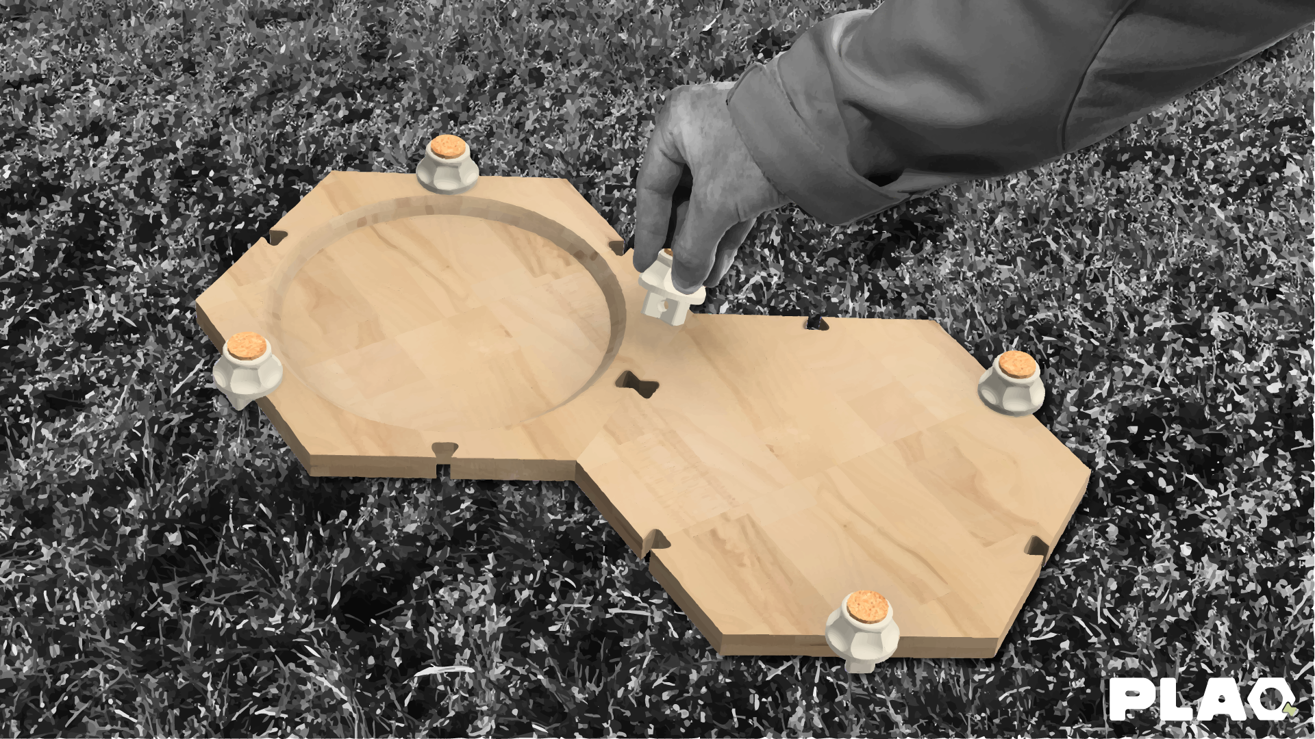 Whether you're dining alone or with friends, PLAQ becomes a fun, interactive product, inviting users to imagine the ideal layout to suit the number of guests, their culinary desires and the particular features of the site. Comprising a wooden top and recycled PE legs, it combines simplicity and ingenuity. Each tray has a dual function: a hollow side, ideal as a plate or container, and a flat side, perfect for cutting ingredients.