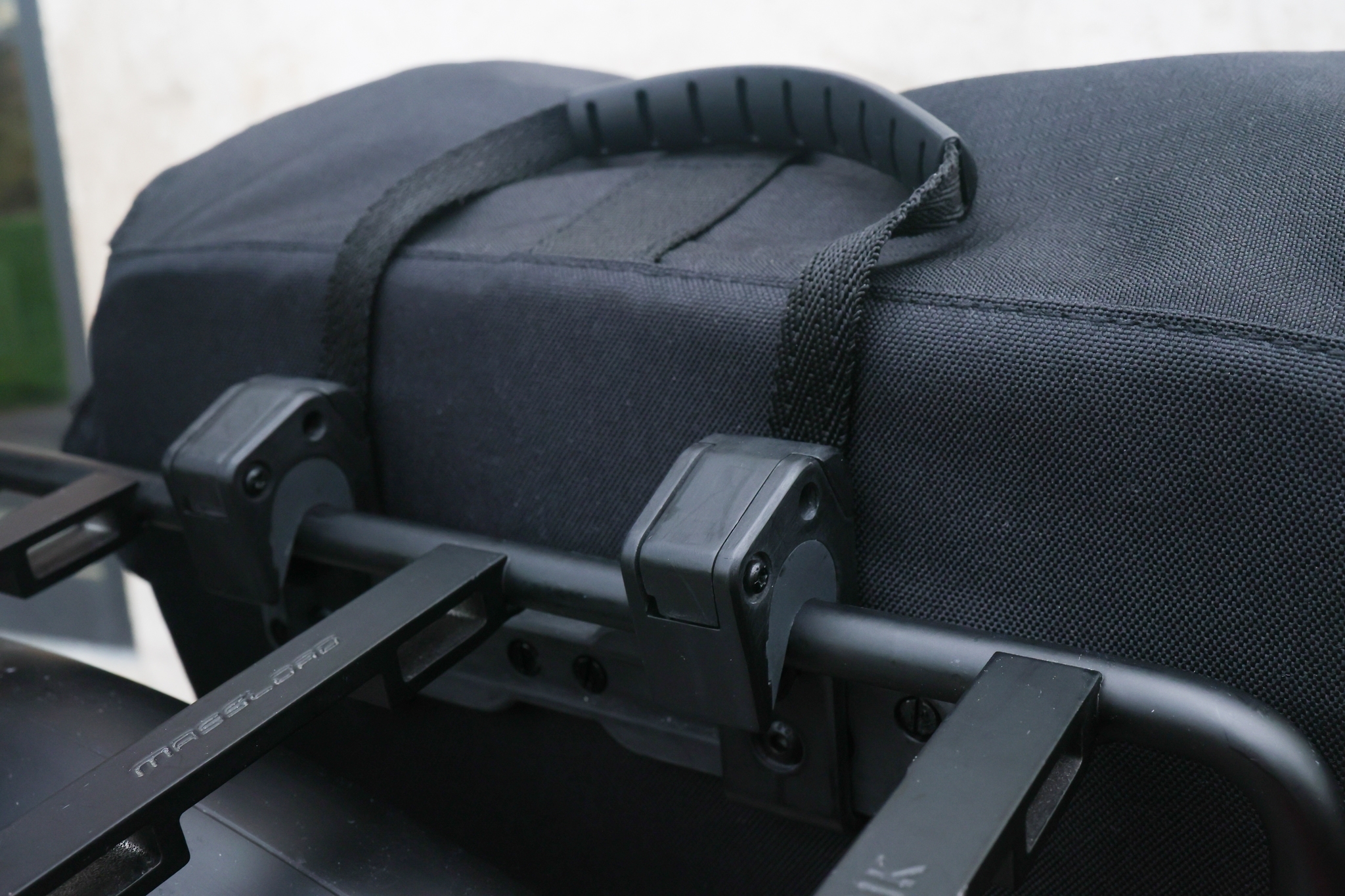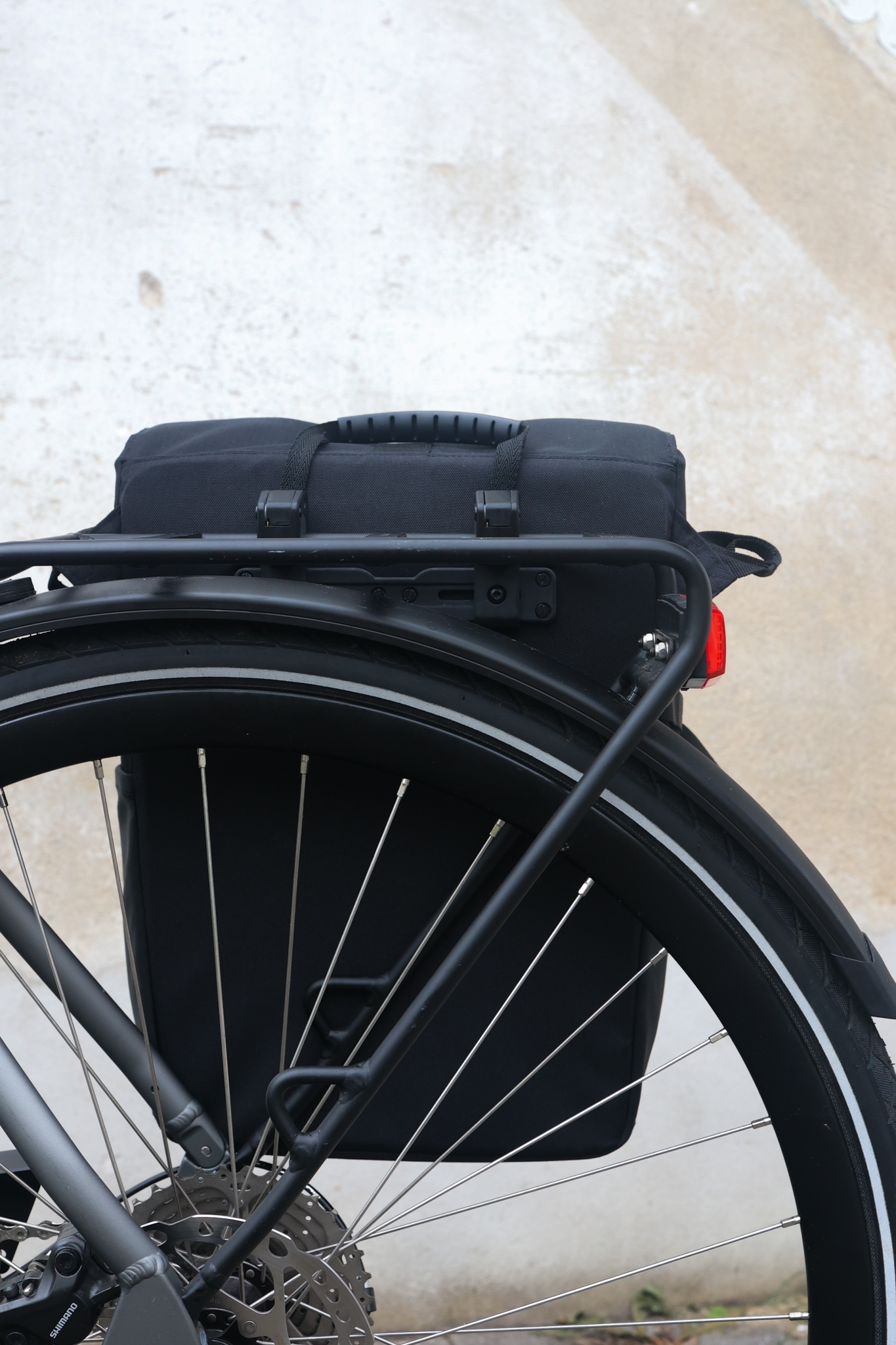 Just by using the carrying handle the bicycle bag can be lifted from and mounted. And even without lifting the handle MIK Hooks allows you to place it on the carrier. With this innovative click in system; heavier bags are easy to place on the luggagecarrier.